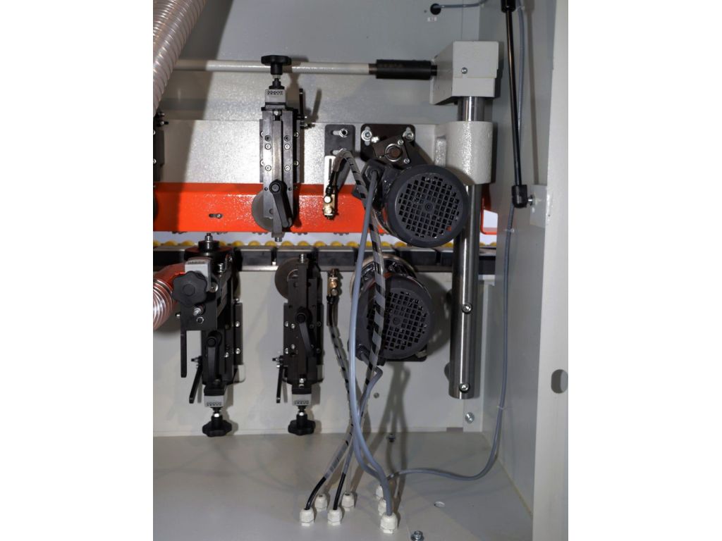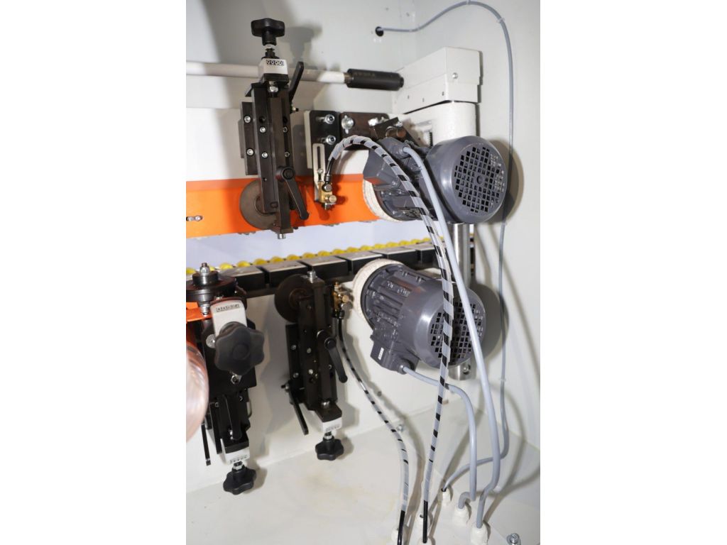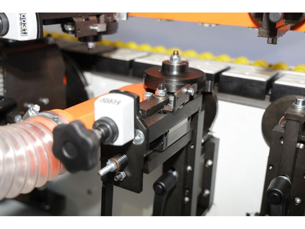 - Коническая форма второго и третьего роликов обеспечивает качественную приклейку кромки даже без предварительного фрезерования.