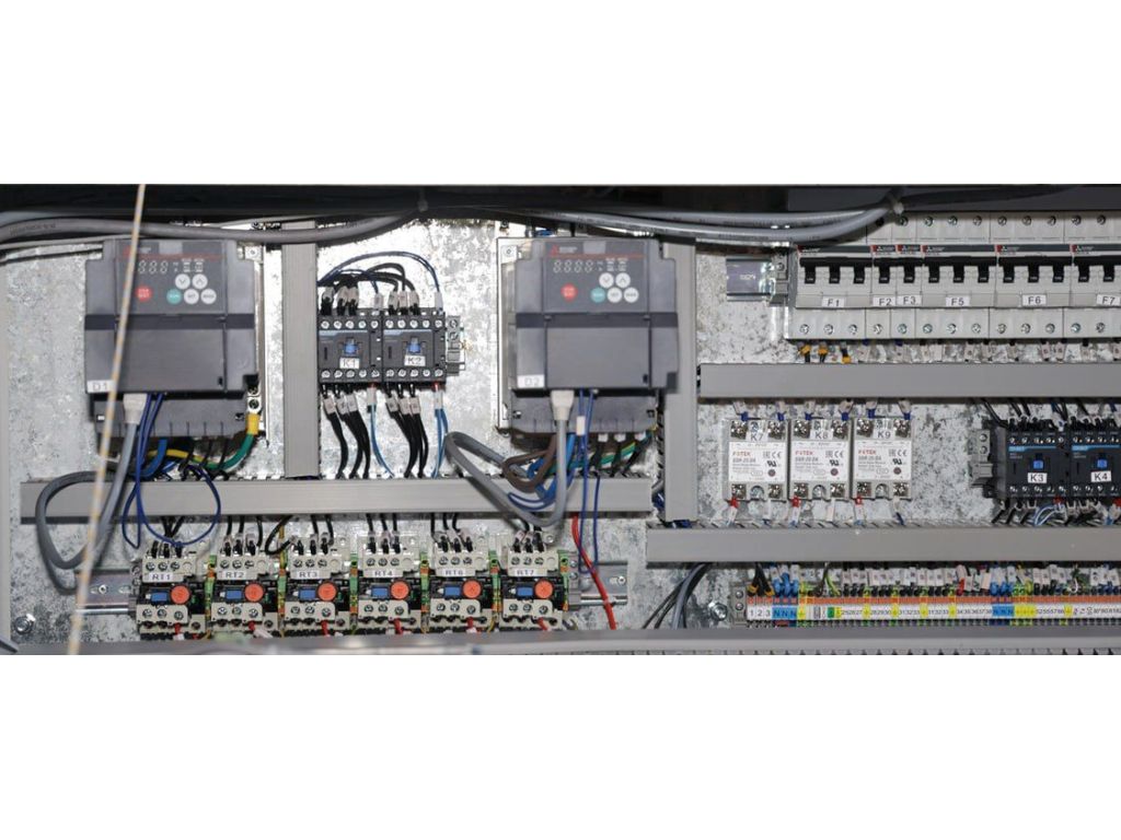 - В станке установлено реле контроля фаз предназначенное для защиты нагрузки, подключаемой к трехфазной сети, защиты от повышения или понижения напряжения любого количества фаз и от нарушения порядка их чередования;