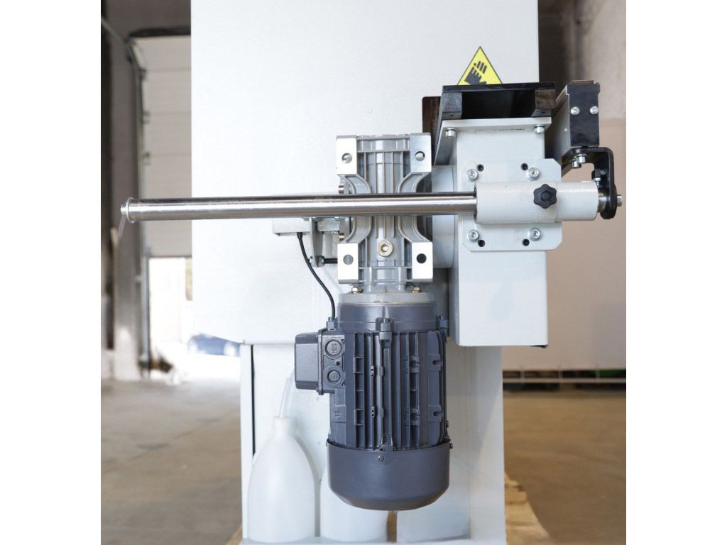 Деталь подается цепным конвейером с обрезиненными башмаками. Ширина башмаков 73 мм. Привод-мотор-редуктор 2,2 кВт VARVEL.