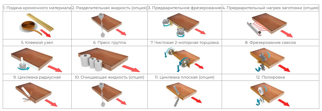 - Отсутствие нагара обеспечивает высокое качество наклейки кромки;