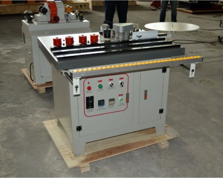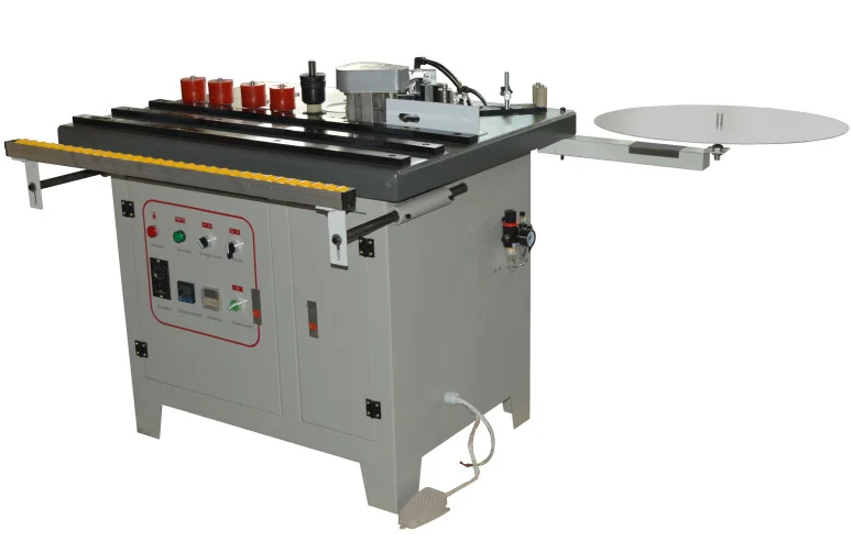 Кромкооблицовочный станок MВ-50 с ручной подачей заготовки оснащён двумя клеенаносящими валиками: один вал предназначен для нанесения клея расплава на кромочный материал, другой вал для нанесения клея расплава на кромку заготовки. Станки MВ-50 оснащены механизмом торцевой обрезки рулонного материала и автоматическим терморегулятором разогрева клея. Можно использовать как рулонный, так и полосовой материал. Станок предназначен для облицовывания прямолинейных и криволинейных кромок мебельных плит.