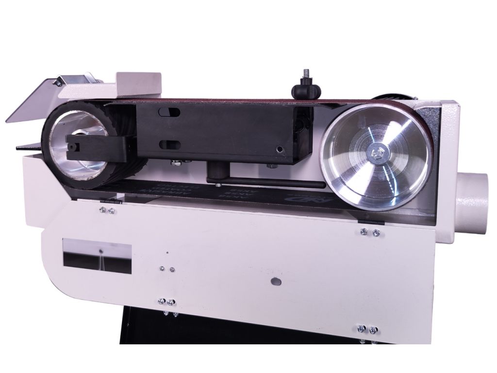 - Универсальность. Благодаря размеру шлифовальной ленты 1220x100 мм, станок подходит для обработки как крупных, так и мелких заготовок. Этот размер ленты делает его пригодным для работы с различными материалами, включая металлы, дерево, пластик и композиты. Универсальные возможности станка позволяют выполнять широкий спектр задач — от грубой обработки до точного финишного шлифования.