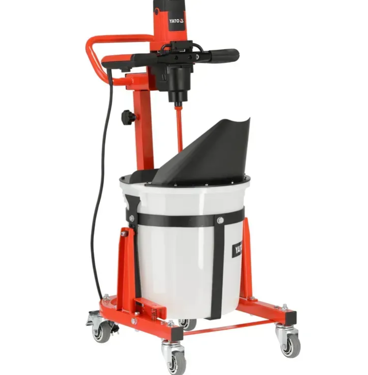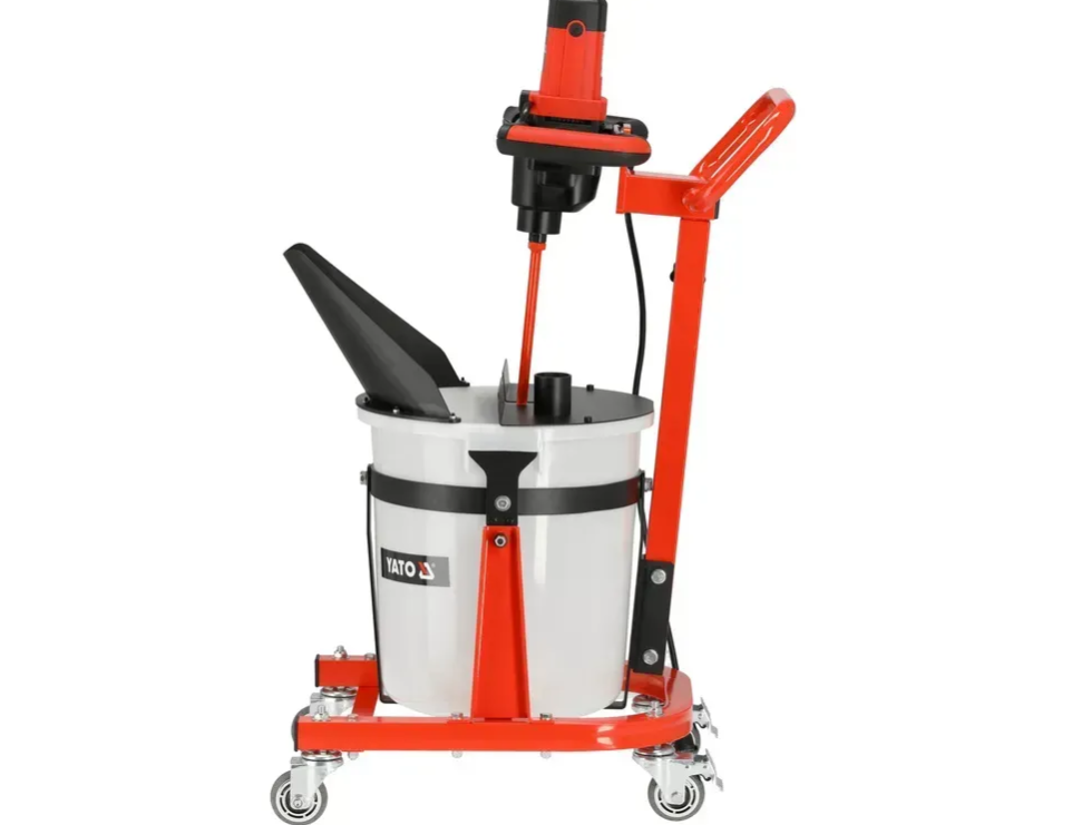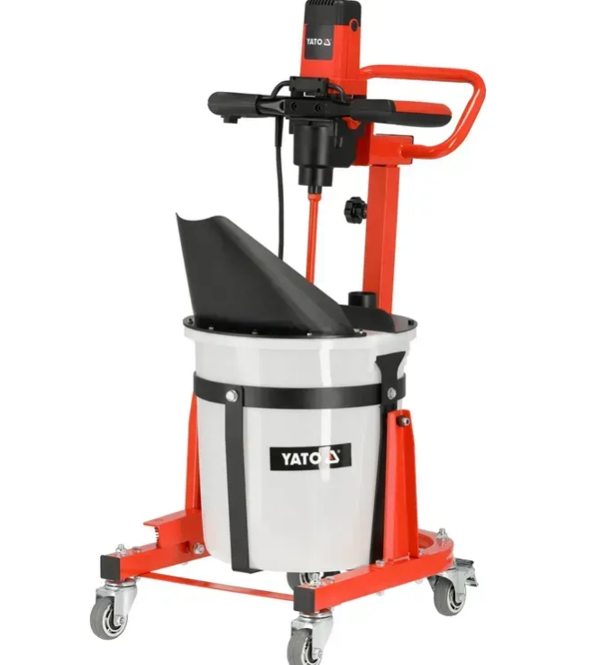 Переносная, работающая от сети смесительная станция YATO YT-82605 для самовыравнивающихся растворов, шпатлевок и эпоксидных смол. Обеспечивает равномерное, эффективное смешивание, а также точную и контролируемую заливку готовых масс благодаря конструкции с легким наклоном ковша. Позволяет дозировать определенное количество массы, что идеально подходит для локального пополнения растворов с целью получения идеально ровного уровня основания.