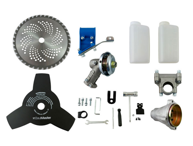 Бензокоса BauMaster BT-9052S – оборудована 2-х тактным бензиновым двигателем объемом 52,7 куб. см и мощностью 3000 Вт. Инструмент рассчитан на работу с трехлопастным режущим ножом. Крутящий момент с двигателя на режущее оборудование передается через неразъемный прямой вал. Запуск бензокосы не составит труда, поскольку инструмент имеет систему легкого старта.