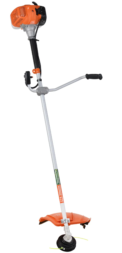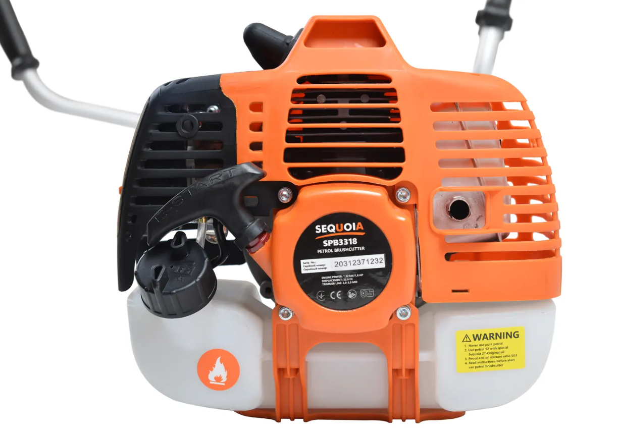 Бензиновый 2-х тактный двигатель, мощностью 1.32 кВт, легко справится с высокой травой и сорняками.