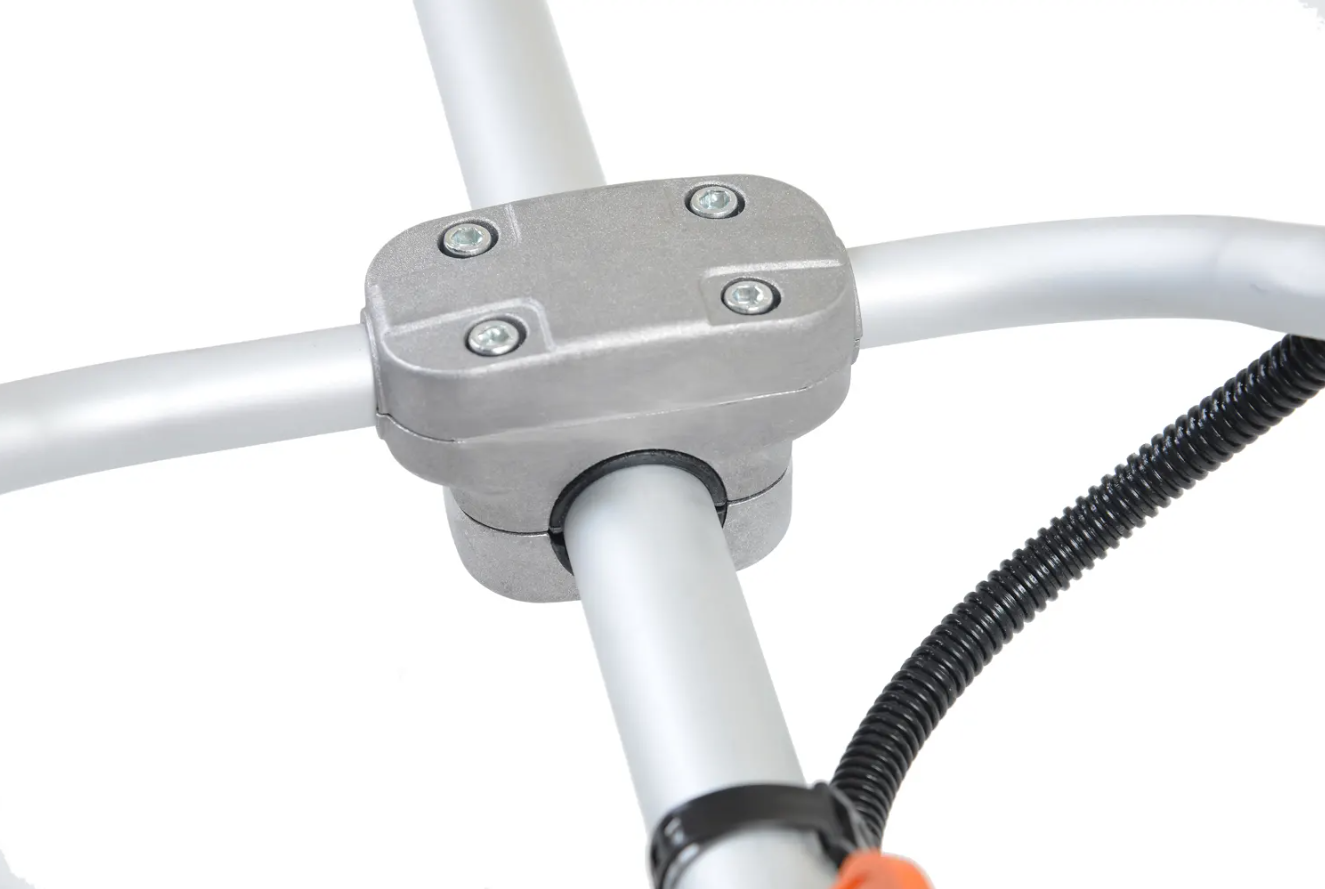 Долгую работу косы обеспечивает надежный двигатель, развивающий 8000 об/мин, большой маховик, охлаждающий двигатель во время работы и большой бак для топливной смеси.