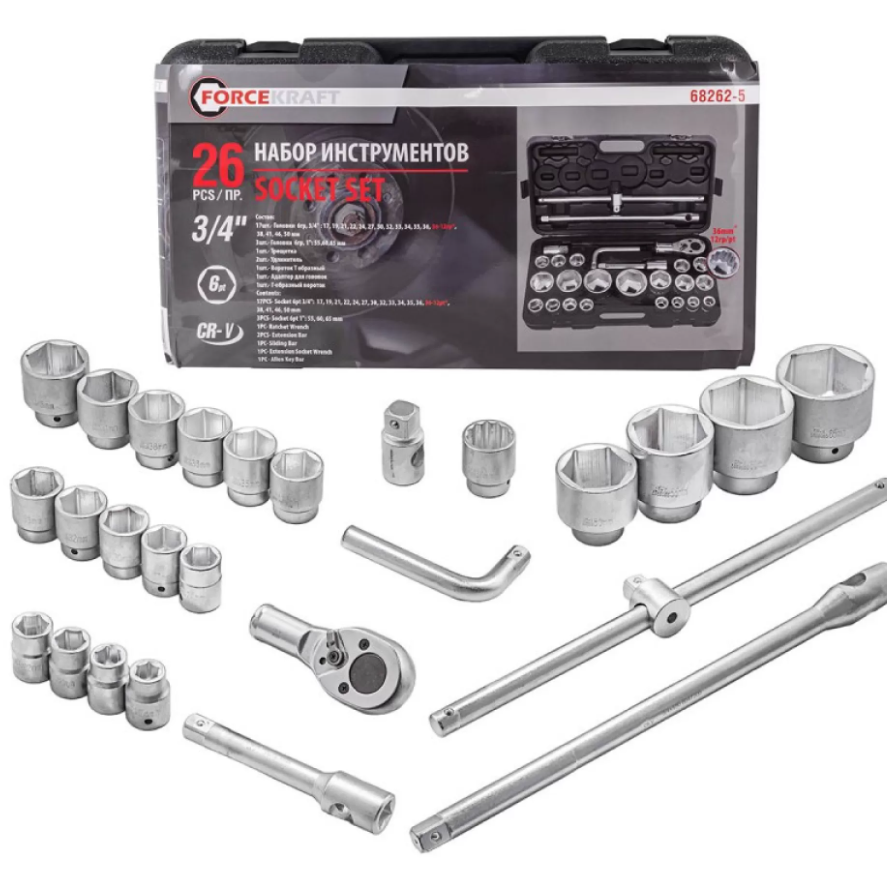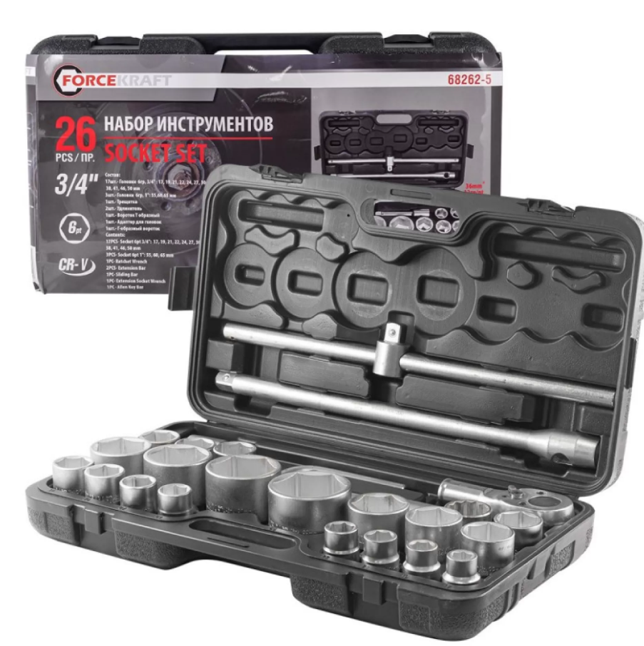 Этот набор инструментов от FORCEKRAFT - это незаменимый помощник для любого мастера. Он включает в себя 26 предметов, которые позволят вам работать с болтами и гайками различных размеров.