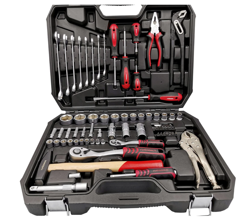Профессиональный инструмент Haisser 70182 на 72 единицы - прекрасная комплектация набора в нем есть всё для комфортной работы в автомобильных так и в домашних работах. Материал изготовления инструмента хром-ванадиевая сталь, что позволяет инструменту быть прочным, но при этом достаточно легким.
