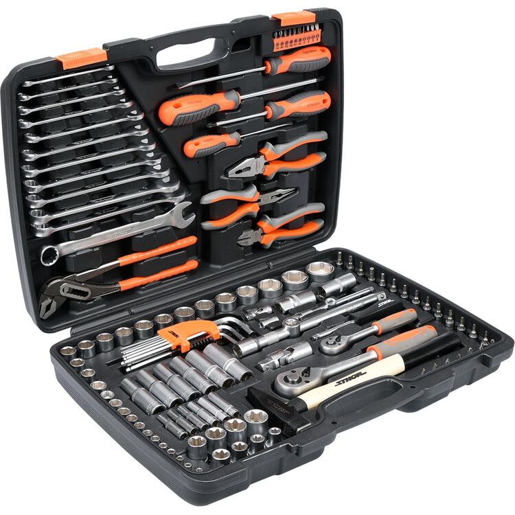 Набор инструментов STHOR – это профессиональный ручной инструмент, необходимый для работы дома, на СТО (автомастерских, автосервисах) и на производстве. Большинство инструментов сделаны из прочной стали. Наборы инструментов STHOR используются при выполнения разных видов работ. Для удобства пользования инструменты собраны в кейс.