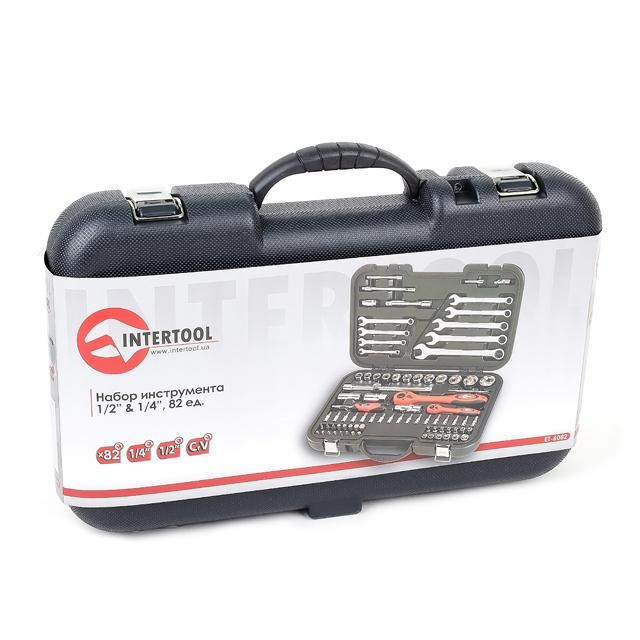 Профессиональный набор инструментов ET-6082 TM INTERTOOL — это оптимальная и хорошо продуманная комплектация из 82 единиц с рабочими квадратами 1/2" и 1/4". Все насадки и большинство инструментов изготовлены из высокопрочного хром-ванадиевого сплава, что обеспечивает высокие эксплуатационные характеристики, а также защиту от коррозии. Благодаря строгому соблюдению технологии производства, весь инструмент характеризуются точностью и отсутствием дефектов. Набор размещается в кейсе из ударопрочного пластика с удобной ручкой и надежными металлическими замками.