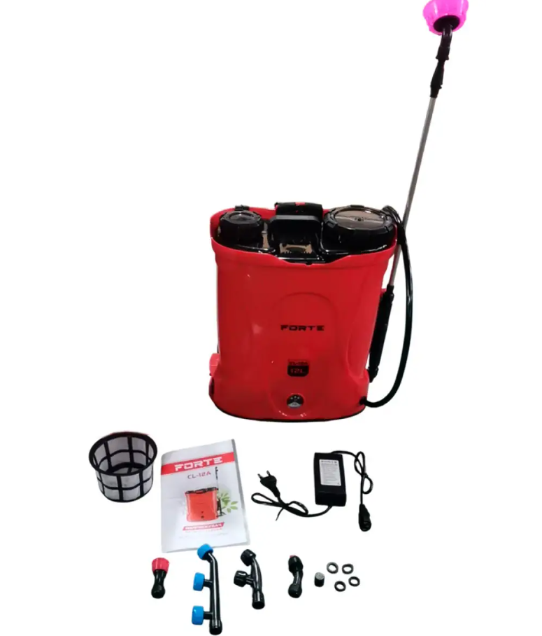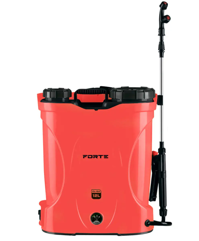 Аккумуляторный опрыскиватель Forte CL12A станет незаменимым помощником на огороде или в саду, когда необходимо опрыскивать растения. Преимущества электрических аппаратов в том, что они не имеют вредных выхлопов, а значит идеально подходят для применения в теплицах. Данная модель укомплектована диафрагменным насосом нового поколения, который не создает давления внутри бака. Устройство будет работать даже с открытой крышкой. Встроенная батарея на 12 вольт 8 ампер часов обеспечит до 4 часов работы без подзарядки. Максимальная температура рабочей жидкости составляет 35 градусов. Распылительная трубка размером от 65 до 110 см помогает распылять и деревья, и огородные растения.