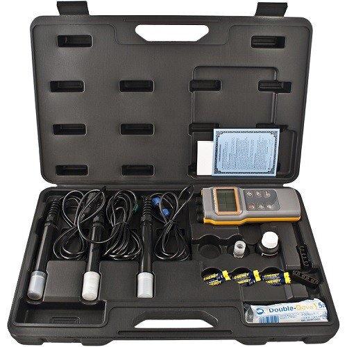 - жидкокристаллический монитор большого размера с функцией многократного одновременного отображения значений параметров: уровня рН (кислотности), электропроводности (солёности) или TDS, растворённого кислорода в воде, а также температурного показателя;