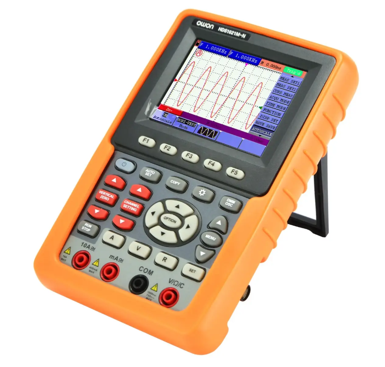 Ручной цифровой осциллограф. Совмещен с DMM-цифровым мультиметром и частотомером. Карманный размер при 3,7 дюймовом цветном TFT дисплее и ударопрочном корпусе делает прибор удобным для использования как в лабораторных, так и в полевых условиях. Совмещение в единой конструкции трех измерителей с широким набором функций определяет его незаменимость для контроля и наладки как сложных электронных устройств промышленного назначения, так и простых бытовых приборов.