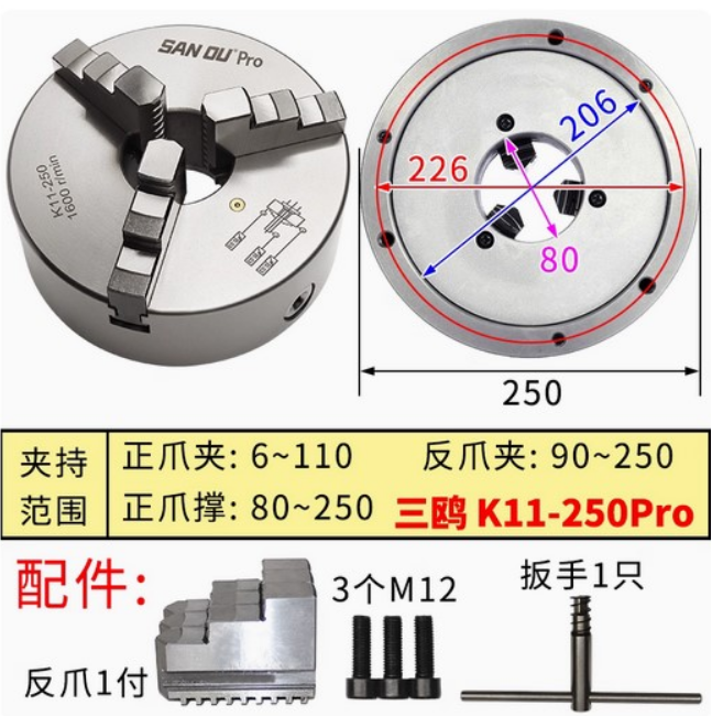 Патрон токарный К11-250 3-х кулачковый (PRO серия)