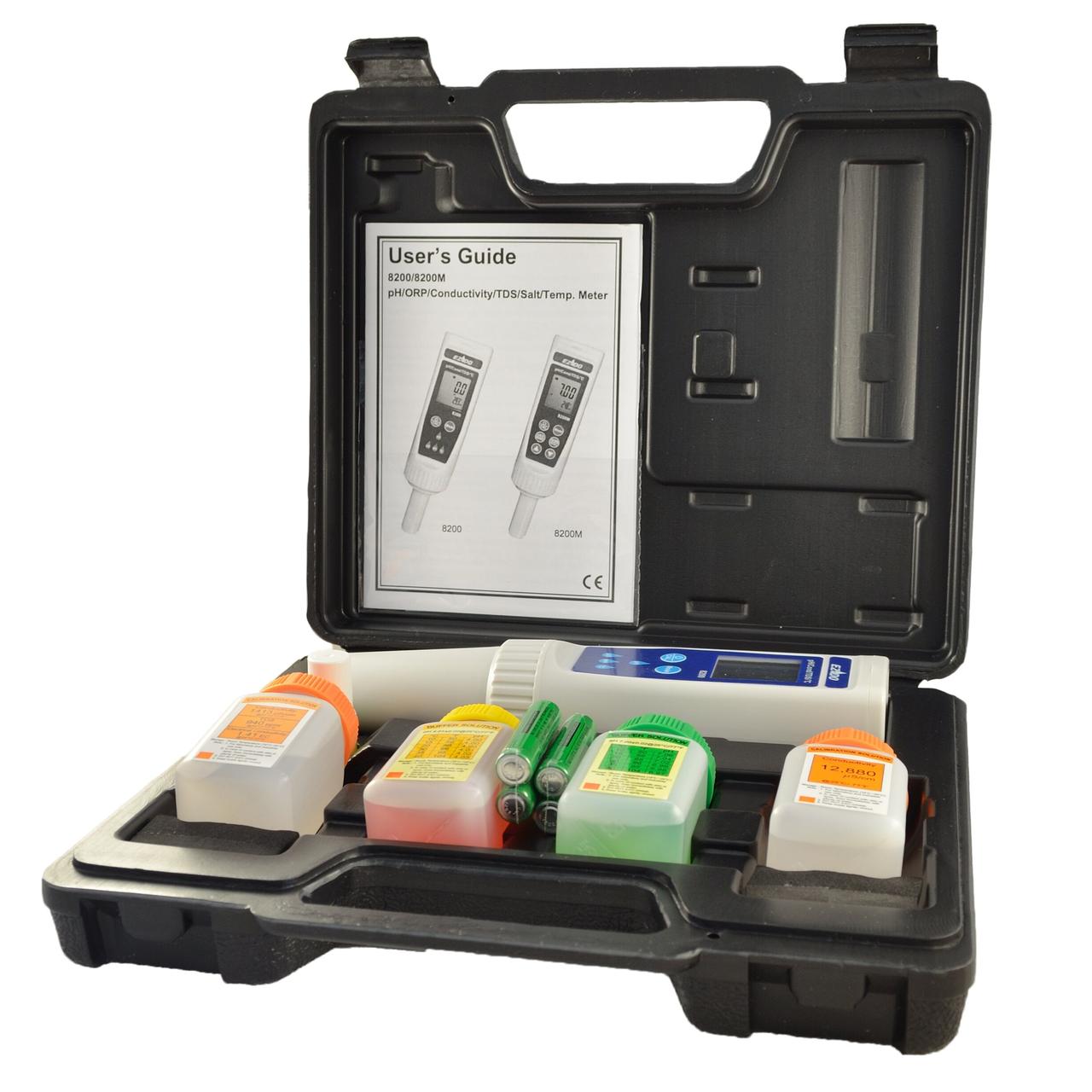 pH-метр/ОВП-метр/кондуктометр/TDS-метр/солемер/термометр водонепроницаемый с АКТ EZODO 8200 – микропроцессорный прибор, который измеряет 5 параметров: pH, электропроводность, общую минерализацию, соленость и температуру с помощью лишь одного комбинированного электрода.