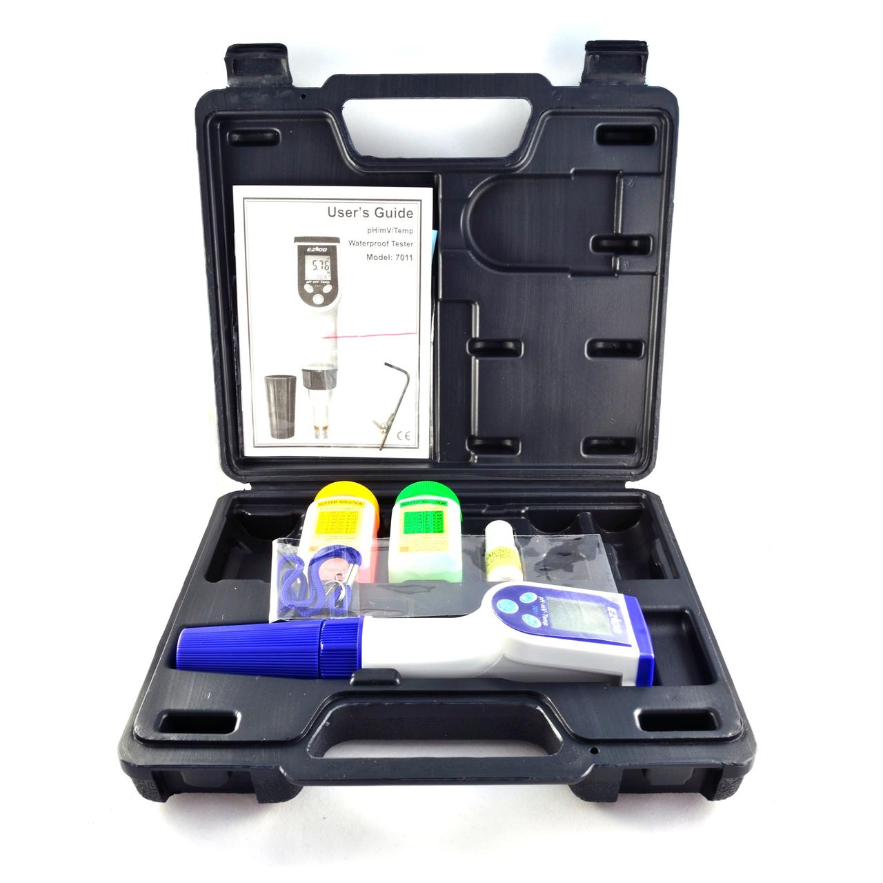 Модель 7011 со сменными электродами, в водозащищенном корпусе, калибруется по трем точкам рН=4.00, рН= 7.00 и рН=10.00 (в комплект поставки входит 2 раствора рН=4 и рН=7), применяется как профессиональный прибор. Встроенный в электрод термометр отображает температуру на экране и благодаря автоматической температурной компенсации корректирует значение рН. Конструкция электродов данной серии приборов позволяет сохранять их в герметическом состоянии, что значительно продлевает срок их службы.