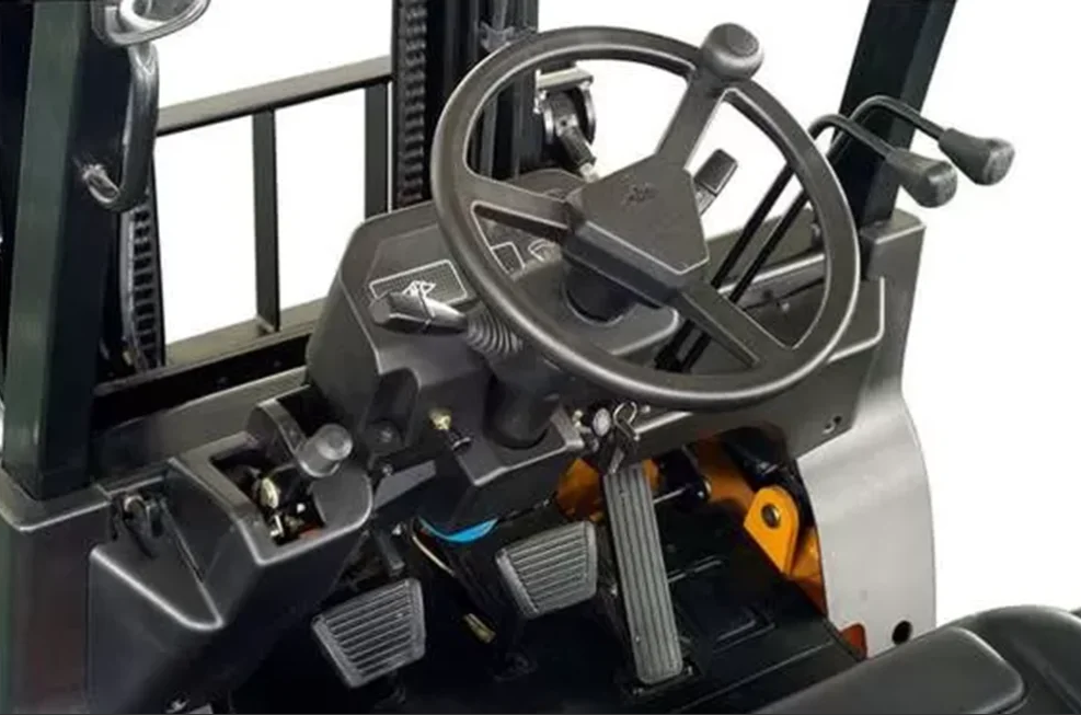 Эргономичная рабочая зона оснащена компактным рулем и удобной приборной панелью. Современная автоматическая коробка передач отличается повышенным ресурсом и плавностью работы. Мачта широко обзора позволяет контролировать груз из любой точки обзора. Обновленный тип капота погрузчика позволяет существенно снизить уровень шума от работы двигателя, обеспечивая тем самым отличную шумоизоляцию. Барабанные тормоза, которыми оснащены все модели, отличаются долговечностью, потому что внутрь их не может попасть масло или другие инородные вещества.
