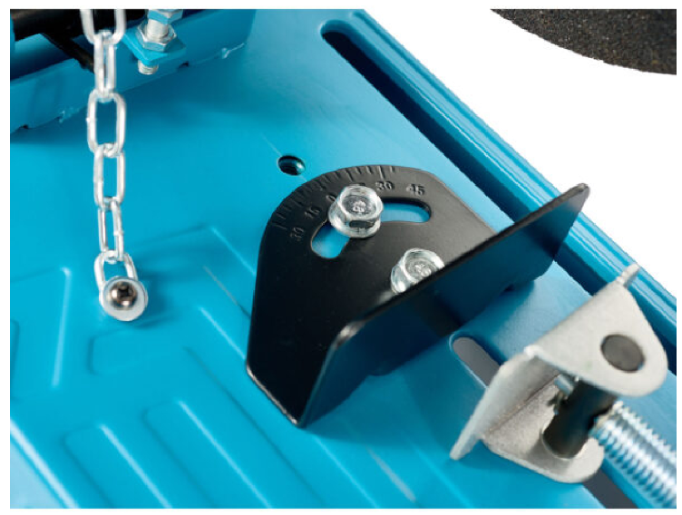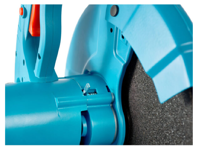 - Ограничитель глубины погружения режущего диска – позволяет устанавливать нужную глубину пропила диска в материале.