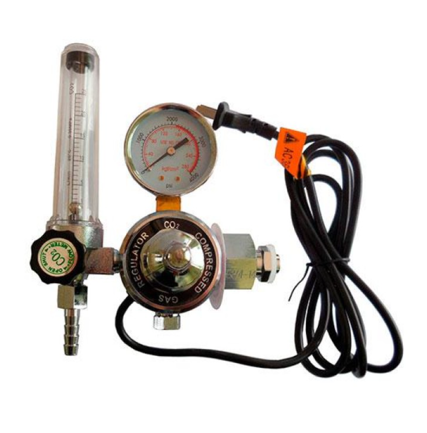 Редуктор GH-258 – это редуктор с подогревателем, который применяется для работ с углекислым газом (CO2), а также специальными газовыми смесями (доля кислорода не более 2%). Возможна установка на баллоны объемом от 20 до 50 л с присоединительной резьбой G 3/4. Для отслеживания ключевых показателей редуктор снабжен манометром, который отвечает за давление газа на входе, и ротаметром для контроля расхода газа. Подогреватель подключается к специальному разъему на сварочном источнике с параметрами 36В/AC. Подогреватель используется при ПВ больше 20% (цикл включения 5 минут), расходе свыше 10 л/мин. и температуре ниже +5°C.
