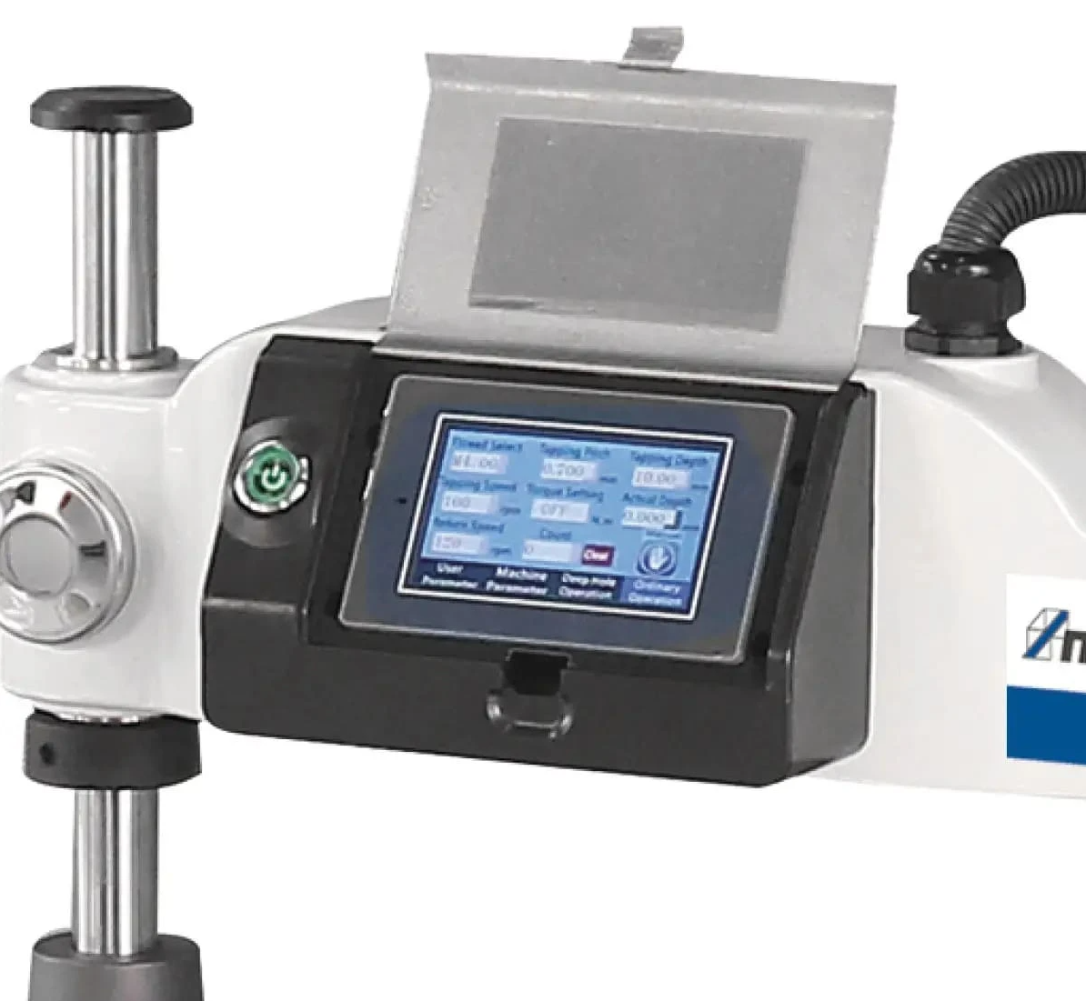 Metallkraft GS 1200-36 E – профессиональное электрооборудование для создания отверстий с резьбой М6-М36. Приводной мотор 1200 Вт запитывается от сети 220 В, и развивает скорость шпинделя до 156 об/мин. Вращение может выполняться вправо и влево. Есть возможность установки резьбонарезной головки под углами 0-90°. Радиус действия консоли составляет 1200 мм. Весит аппарат 42 кг, его размер – 1400х100х700 мм.