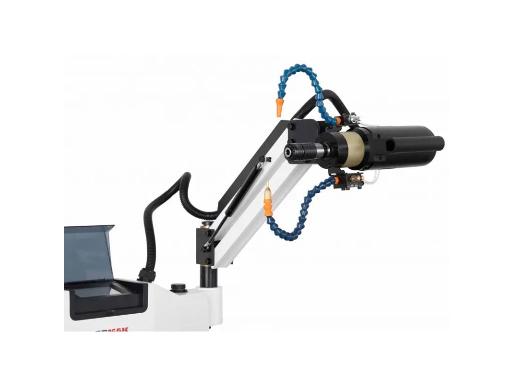 Станок оснащен системой микрораспыления смазки, обеспечивающей постоянное охлаждение с минимальным расходом материала, и продувочной системой, которая удаляет стружку и поддерживает максимальную видимость рабочей зоны. Быстрозажимной патрон позволяет быстро и легко крепить метчики для сквозных и глухих отверстий. Этот настольный резьбонарезной станок отлично подходит для работы со сталью, нержавеющей сталью, алюминием и цветными металлами.