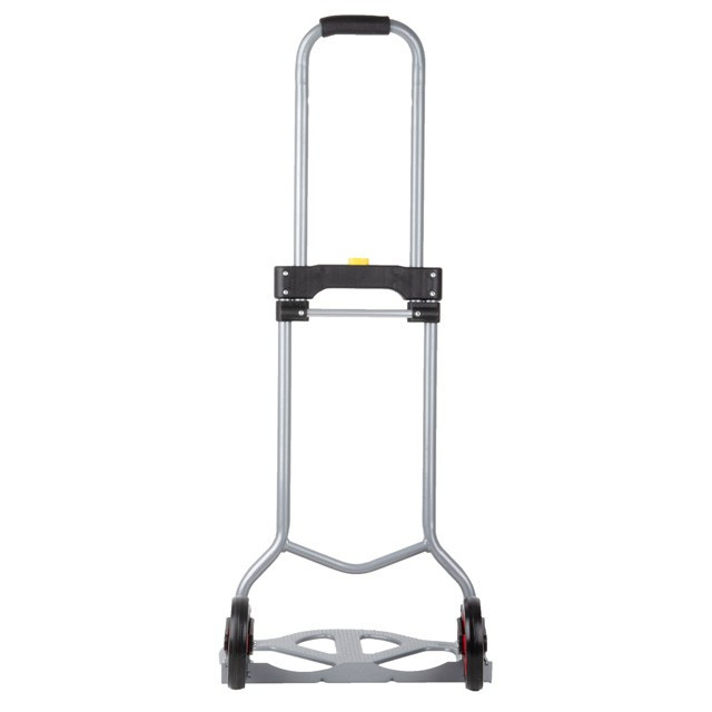Тележка изготовлена из стали, служит надежно и долговечно. Выдвижная ручка, удобная по высоте (96 см), фиксируется замком, как в сложенном, так и в разложенном виде. Откидная стальная платформа с габаритами 38.5 х 23.5 см позволяет быстро подхватывать груз. Надежная, не гнется и не деформируется, благодаря ребрам жесткости, рифленой поверхности и загнутому опорному краю.