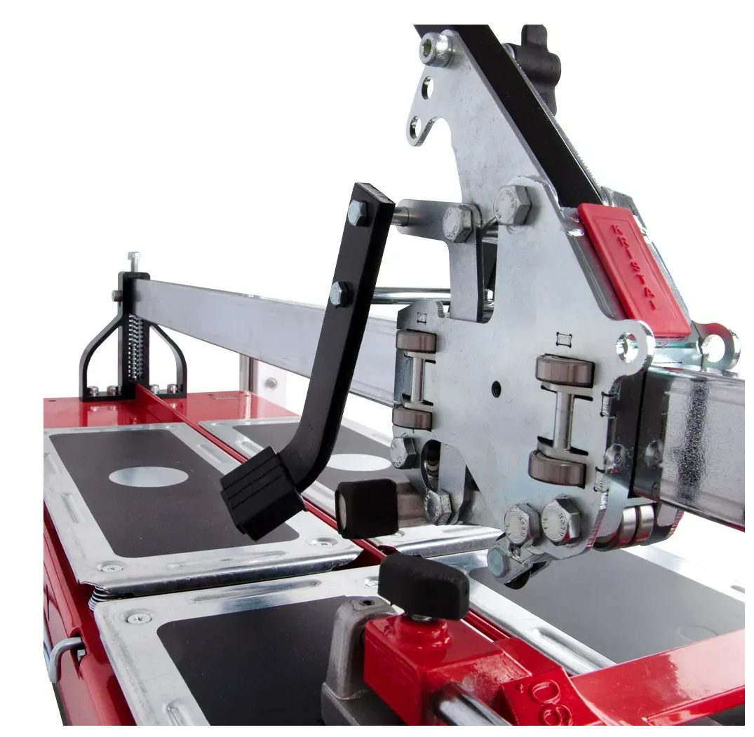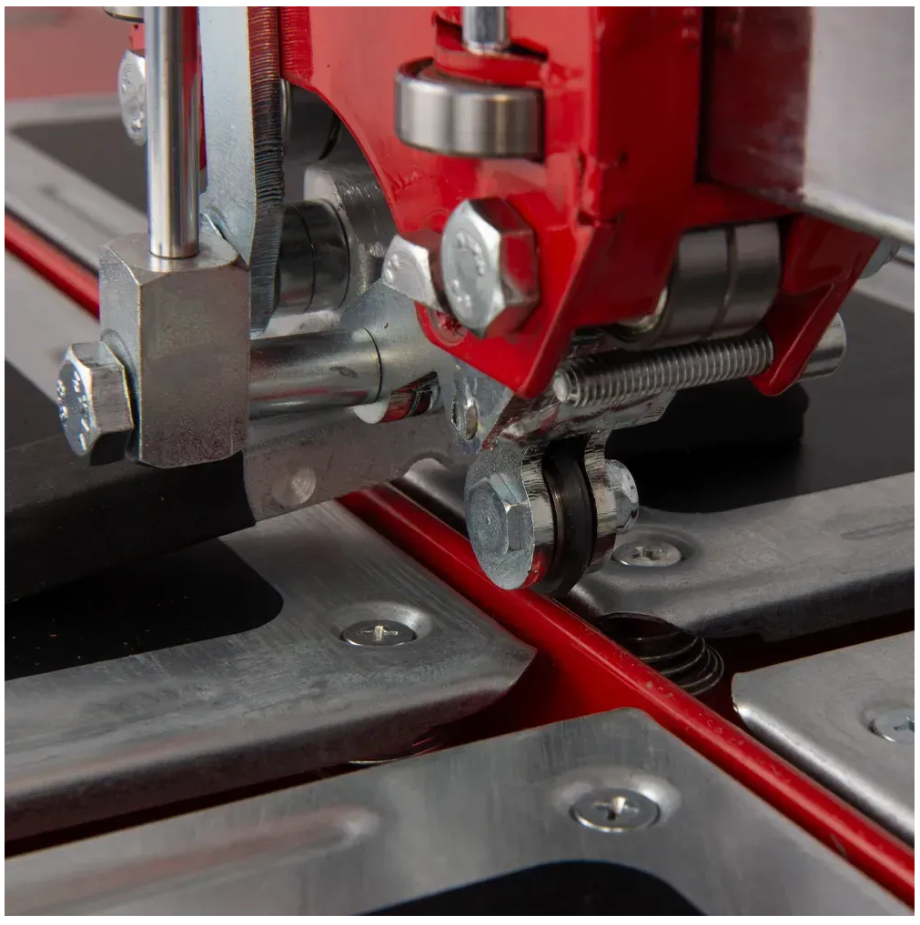 Плиткорез комплектуется режущим роликом на подшипнике. Плиткорез оснащён колёсами для облегчённого передвижения. Расширенные амортизирующие площадки с обрезиненной поверхностью исключающие скольжение плитки по поверхности. В качестве опций плиткорез может быть оснащен комплектом из четырех ножек для удобства эксплуатации, приставным столом с ножками для размещения габаритной плитки, лазерным визиром.