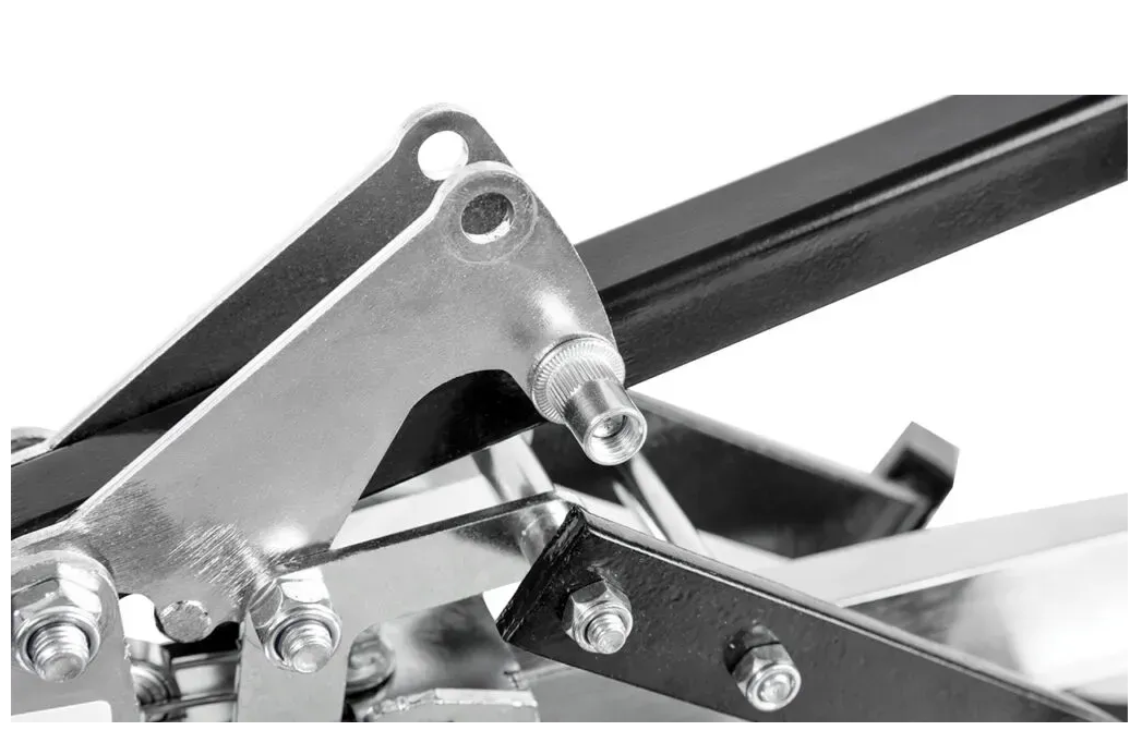 Ручной плиткорез KRISTAL GIGA-CUT 1200 (35503) – выполнен из никелированной стали с порошковым защитным покрытием. Ручка может иметь два положения для регулировки рычага усилия и оснащена двумя сверхпрочными лапками для деликатного разлома на разной ширине плитки. Обе лапки имеют пластиковое покрытие и не оставляют следов на плитке, малая лапка оснащена магнитом, что облегчает процесс резки.
