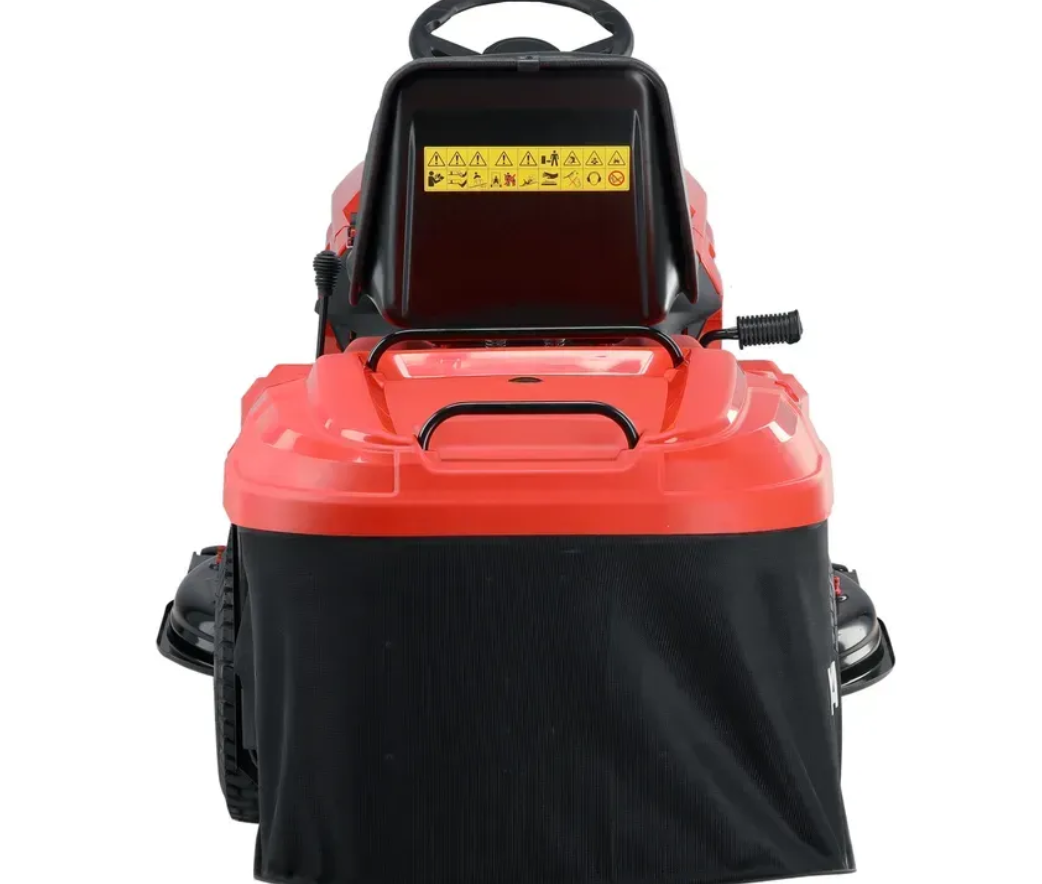 Трактор оснащен автоматической коробкой передач, что обеспечивает исключительную простоту и комфорт управления. Он оснащен электростартером и вместительным травосборником объемом 220 литров, что значительно облегчает сбор травы с больших площадей. Режущий блок запускается и останавливается нажатием переключателя, расположенного под рулевым колесом.