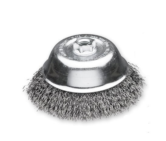Чашечные щётки с гофрированной проволокой применяются для обработки больших площадей: для удаления ржавчины, краски, окалины или загрязнений, а также для полировки