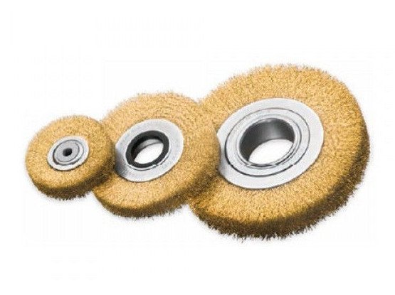 | Краткие характеристики | Тип: Щетка цилиндрическая Материал: Сталь Размер: 80х20 мм Особенности: латунный гофрированный провод 0,2 мм/ скорость вращения: 10000 об/мин |