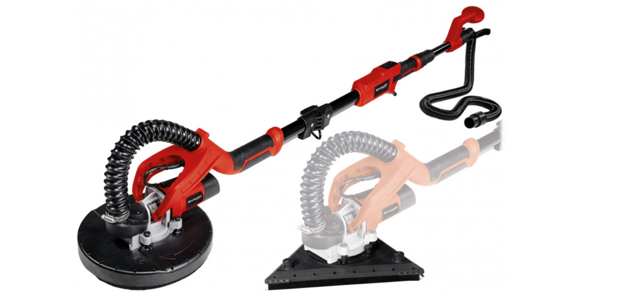 Шлифмашина для стен и потолка Einhell TE-DW 225 X обдирает старую краску, обои, дефекты штукатурки, образуя ровные и гладкие поверхности. Агрегат поставляется с круглой и треугольной насадками, которые позволяют обрабатывать большие конструктивные элементы зданий, углы и стыки смежных стен.