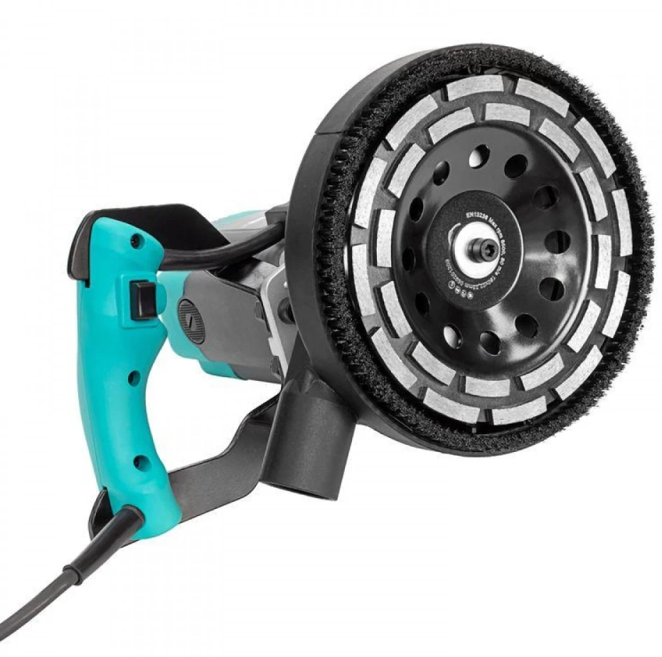 Мощный двигатель 1900 Вт обеспечивает высокие обороты, поэтому шлифмашиной профессионал будет работать быстро и результативно. Скорость вращения диска можно регулировать - с такой функцией профессионал устанавливает нужное количество оборотов в зависимости от задачи: выполняет и грубую шлифовку, и финишную полировку, т.е. работает на всех этапах одним инструментом. Также регулировка важна для использования разных алмазных чашек, которые в зависимости от алмазных элементов требуют разной скорости вращения. Диаметр чаши до 180мм. Тип шлифования – сухой.
