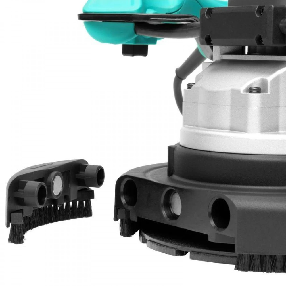 - Отсоединяемый сегмент кожуха для работы в труднодоступных местах (можно «подходить» шлифовальным кругом на 40 мм ближе к углам, примыканиям, стыкам и т.д. в отличие от шлифмашин без отсоединяемого кожух);