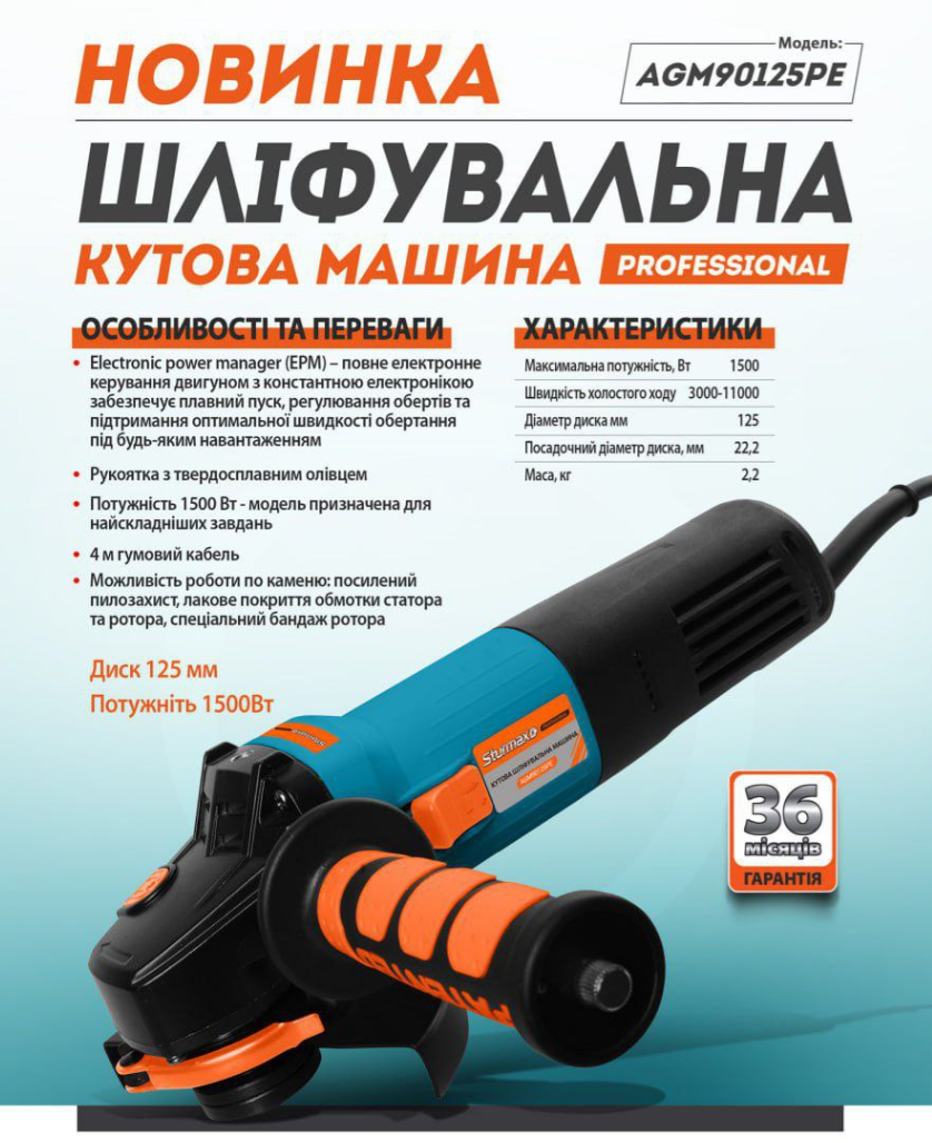 Sturmax AGM90125PE – надежная и мощная болгарка (КШМ) профессиональной линейки инструмента Sturmax под рабочий диаметр диска 125 мм. Благодаря оптимальной компоновке модель прекрасно лежит в руках, а сбалансированные массогабаритные показатели способствуют лучшему контролю даже во время работы в труднодоступных местах.