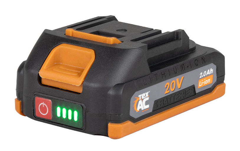 Данный шуруповерт работает от аккумулятора на 20 В, что обеспечивает высокую мобильность и независимость от электрических розеток. Встроенная литий-ионная батарея ёмкостью 2 А·ч отличается долгим сроком службы, быстрой зарядкой и способностью сохранять энергию даже при длительных перерывах между использованием.