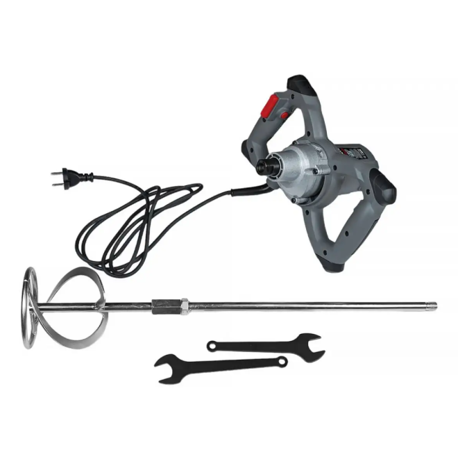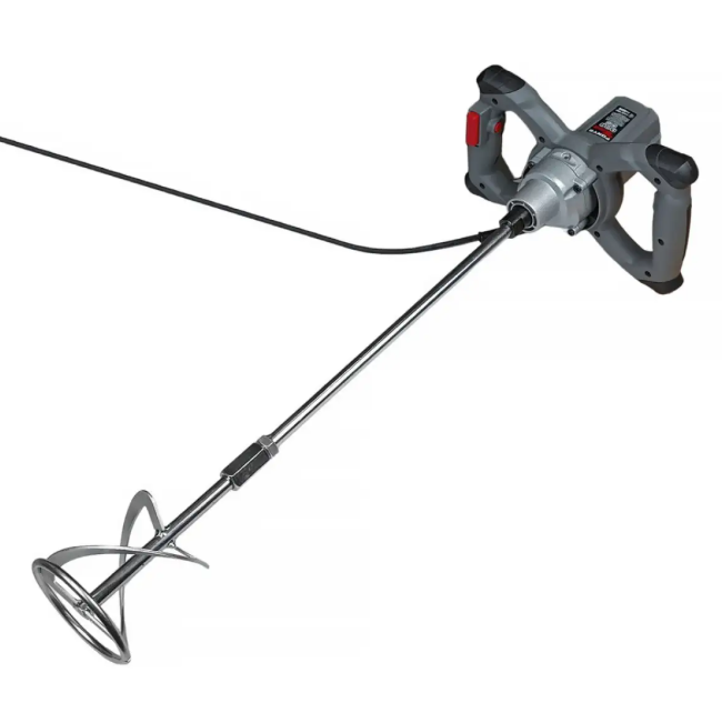 Особенности дрели-миксера Forte HM 1111 VR (59347): Мощный строительный миксер, предназначен для качественного перемешивания самых разных строительных смесей, это может быть: штукатурка, шпаклевка, клей, краска и даже такой тяжелый строительный материал как бетон. Чтобы привести устройство в действие, необходимо наличие обычной бытовой сети напряжением 220В Электродвигатель имеет повышенную мощность в 1100 Вт Пользователю доступна возможность регулировать частоту вращения для выбора наиболее оптимальной скорости для замешивания определенного типа материала Конструкция миксера состоит их двух удобных для захвата рукояток, которые благодаря своей уникальной форме позволяют полностью держать под контролем весь процесс работы Специальные резиновые накладки, способствуют защите техники в случае падения
