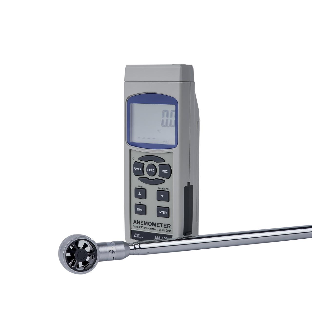 Lutron AM-4232 – портативный цифровой анемометр с телескопическим зондом для определения скорости движения воздуха, объема расхода воздушного потока и температуры воздуха.