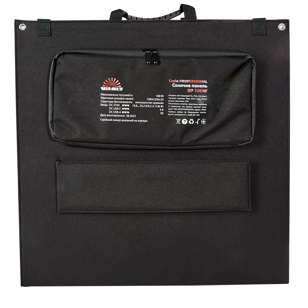 Панель имеет достаточно большую площадь для захвата солнечного света (1084×536×25 мм), но при этом достаточно легкая и мобильная (4,3 кг). А распространенный тип разъема XT60 позволит подключить панель не только к зарядным станциям Vitals, но и ко многим другим станциям, присутствующим на рынке Украины и Европы.