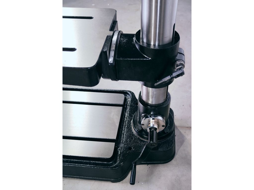 - Удобство эксплуатации: Рабочий стол размерами 338x300 мм предоставляет достаточно места для размещения различных заготовок. Стол можно легко регулировать по высоте, а расстояние от шпинделя до стола составляет 280 мм, что позволяет работать с заготовками различных размеров. При необходимости можно использовать станок и без стола, устанавливая заготовки непосредственно на основание — расстояние от шпинделя до основания составляет 540 мм.