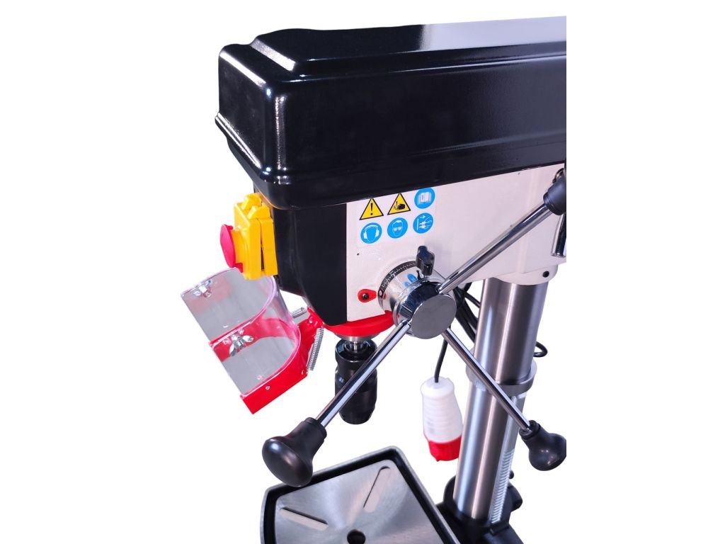 Двигатель мощностью 600 Вт обеспечивает 12 скоростей вращения шпинделя в диапазоне 180-2740 об/мин. Подъем и опускание шпинделя производятся с помощью эргономичной ручки на боковой панели. Стол станка регулируется по высоте и углу наклона относительно шпинделя, что позволяет качественно выполнять разные задачи. Для работы с габаритными заготовками стол можно снять и использовать в качестве опоры основание. Прочная конструкция из высококачественных материалов гарантирует продолжительную и надежную службу оборудования. Заказать настольный сверлильный станок MAST Metalltechnik M-SV1316S-1 вы можете на нашем сайте с доставкой по Украине.