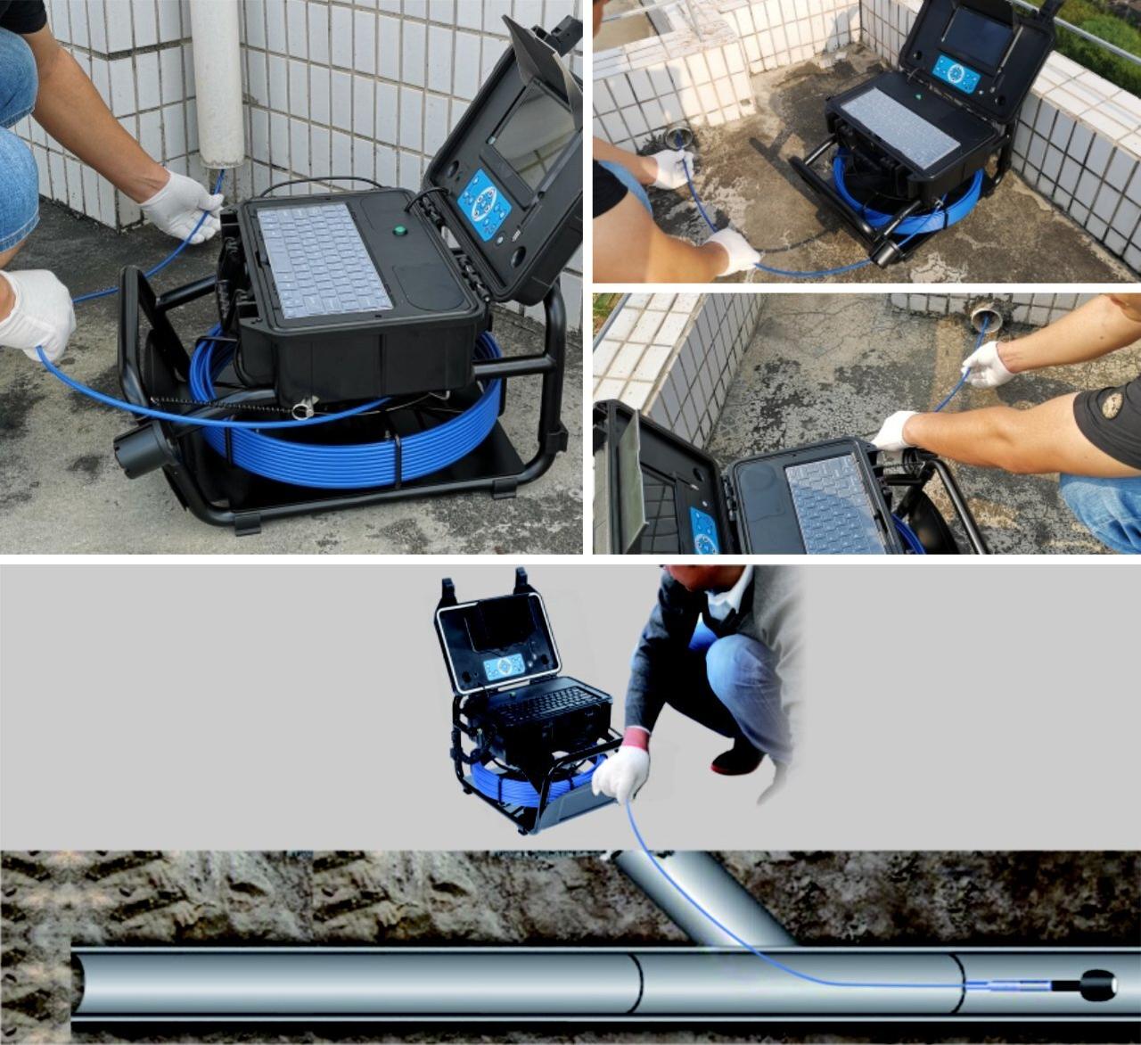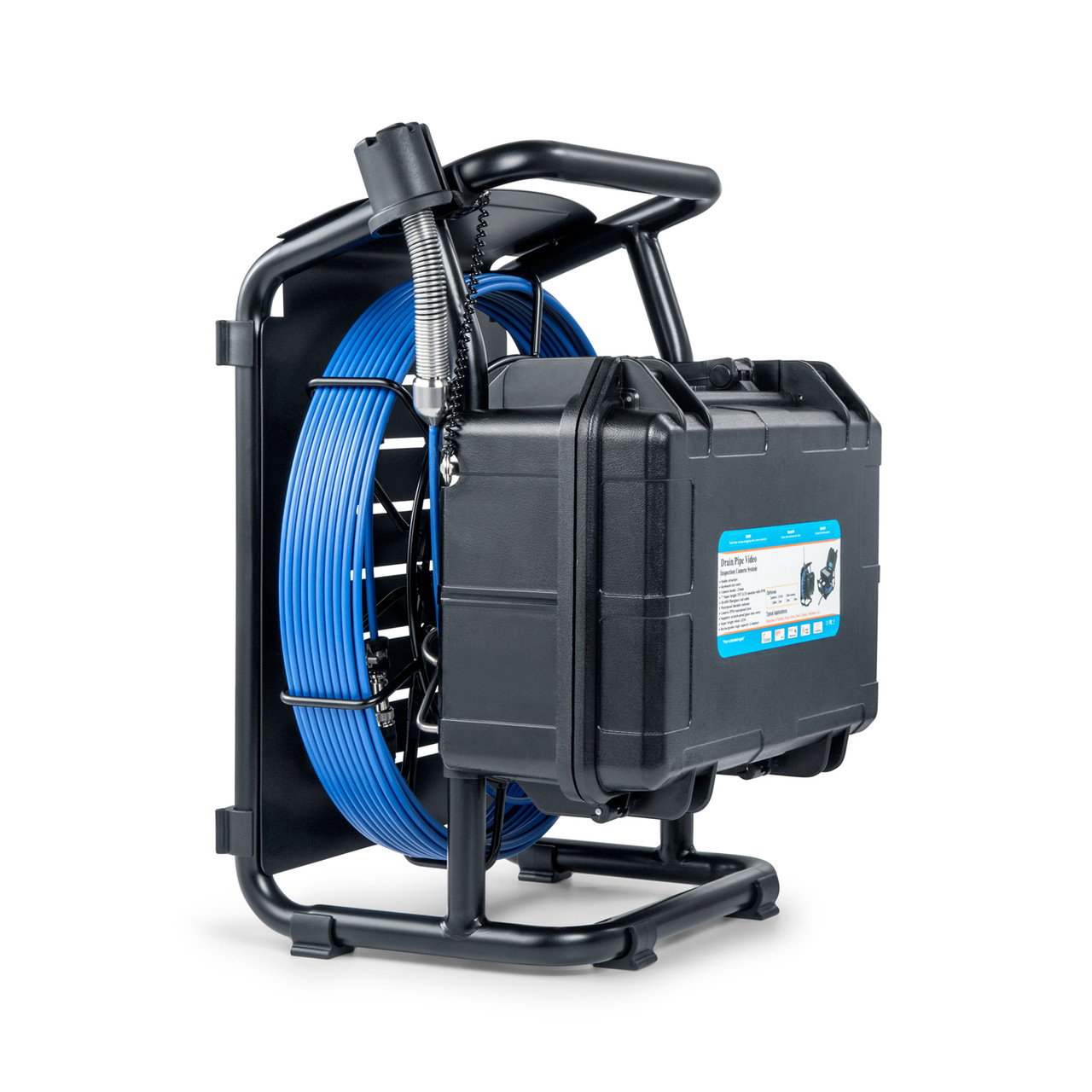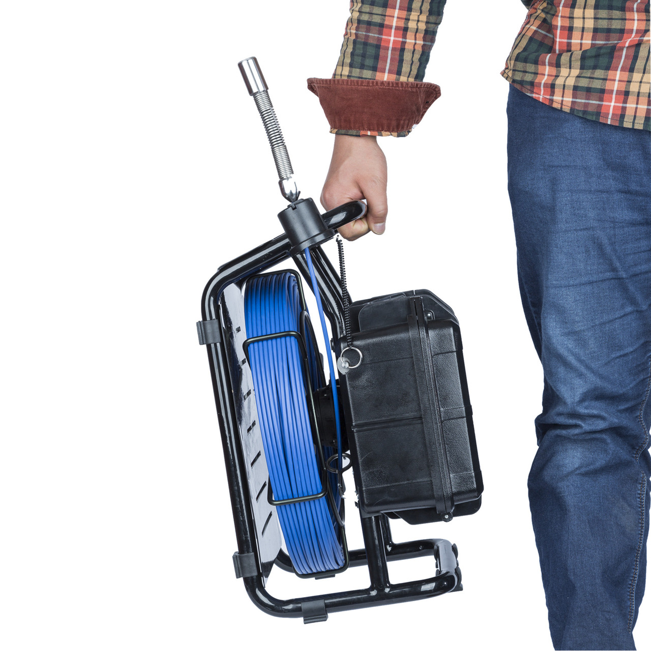 Все компоненты системы смонтированы на легкой и прочной металлической раме, которая обеспечивает удобную транспортировку прибора. Головка камеры 23 мм предназначена для осмотра труб диаметром 30-200 мм. Для труб большего диаметра необходимо использовать 38 мм камеру (опционно). Для определения положения головки камеры дополнительно предусмотрен вариант со встроенным зондом 512 Гц, местоположение которого локализуется с помощью локатора 512 Гц.