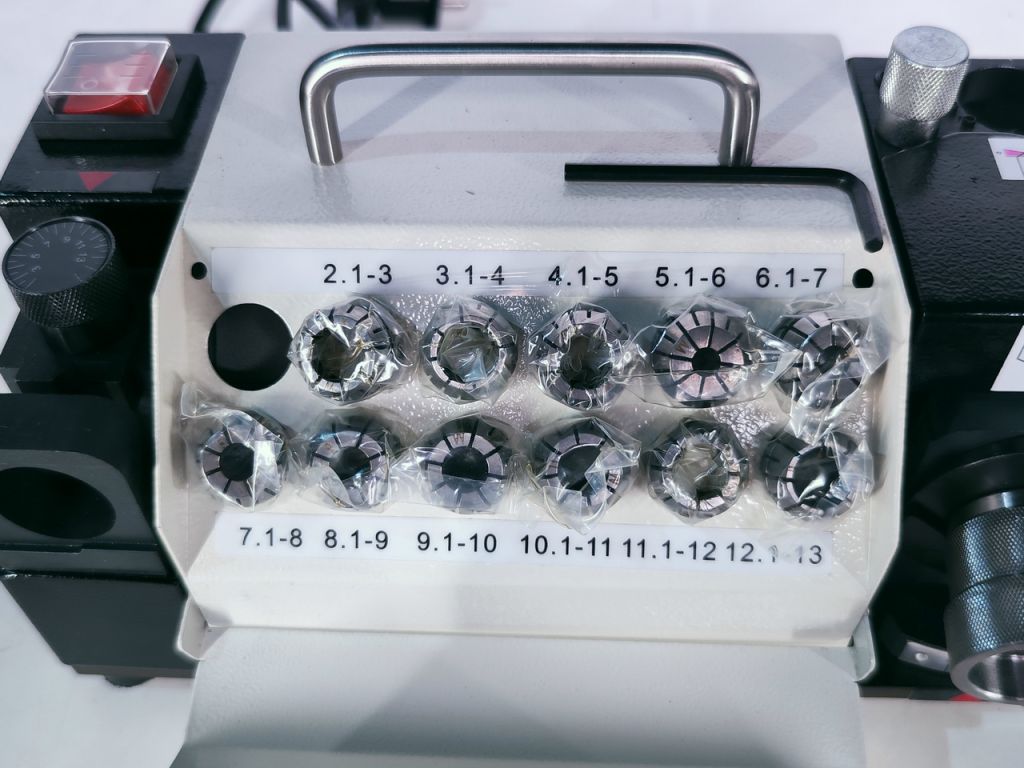 Наличие 11 цанг позволяет легко и быстро закреплять сверла различных диаметров, обеспечивая стабильность и точность при заточке. Это значительно ускоряет процесс работы и делает её более комфортной для оператора.