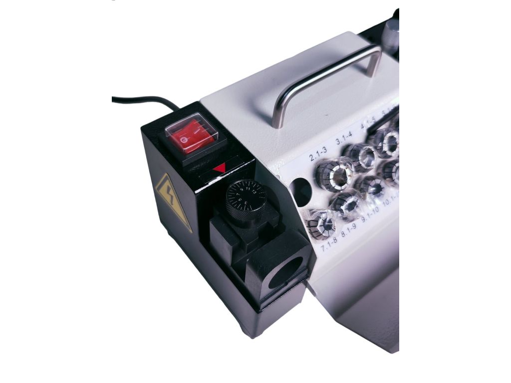 - Простота использования. Наличие 11 цанг позволяет легко и быстро закреплять сверла, а высокие обороты обеспечивают точную заточку, минимизируя риск повреждения инструмента.
