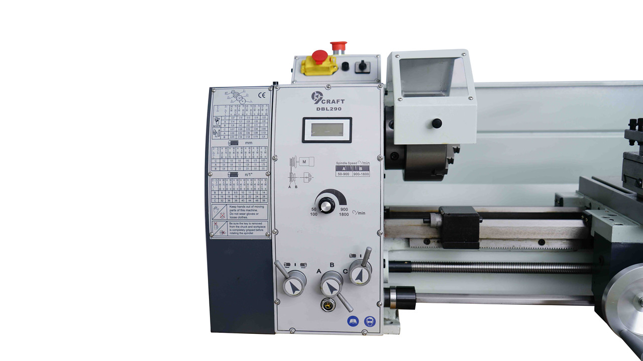 Настольный токарно-винторезный станок 9craft DBL290 имеет автоматическую продольную и поперечную подачу, а также характеризуется высоким качеством исполнения. Оснащен концевыми выключателями на крышке токарного патрона и крышке гитары. Имеется концевой выключатель для перемещения суппорта. Суппорт имеет резьбовой циферблат. На данном станке установлен мощный бесщеточный синхронный електродвигатель на постоянных магнитах 1500вт. Возможен вариант с коллекторным двигателем и 380в 3-х фазным двигателем. Плавная регулировка оборотов. Станина закалена и прецизионно отшлифована. Тихий и удобный в использовании.