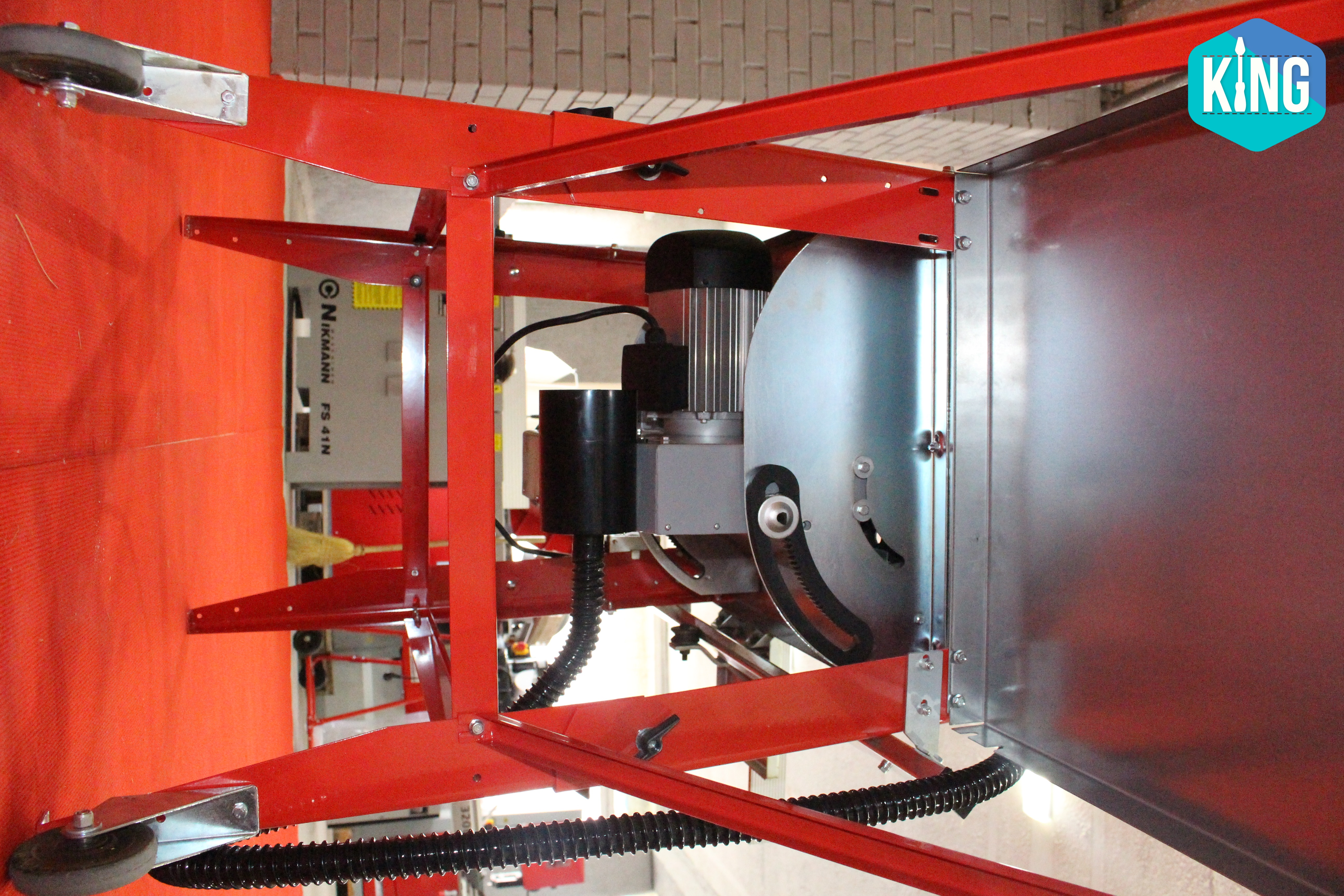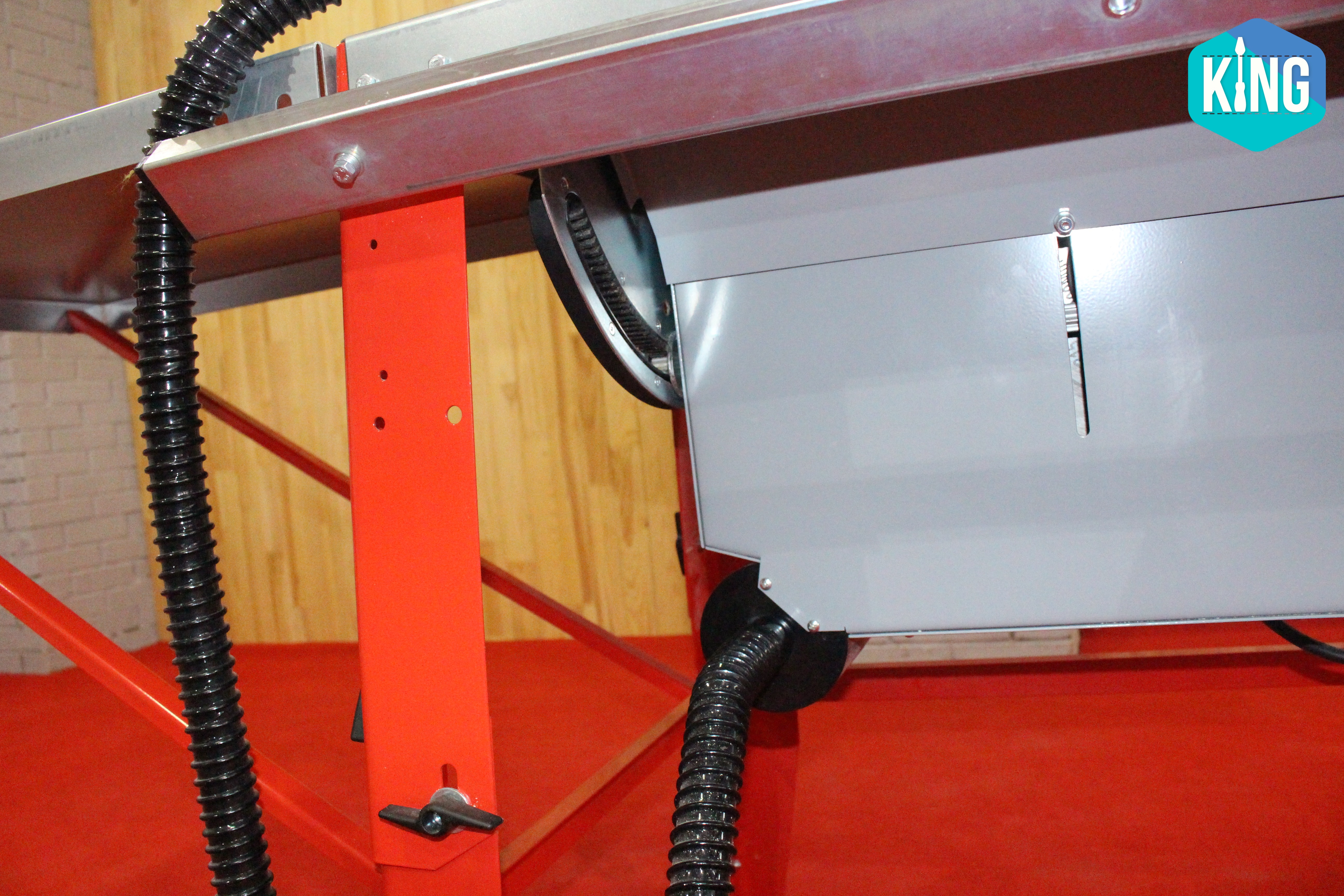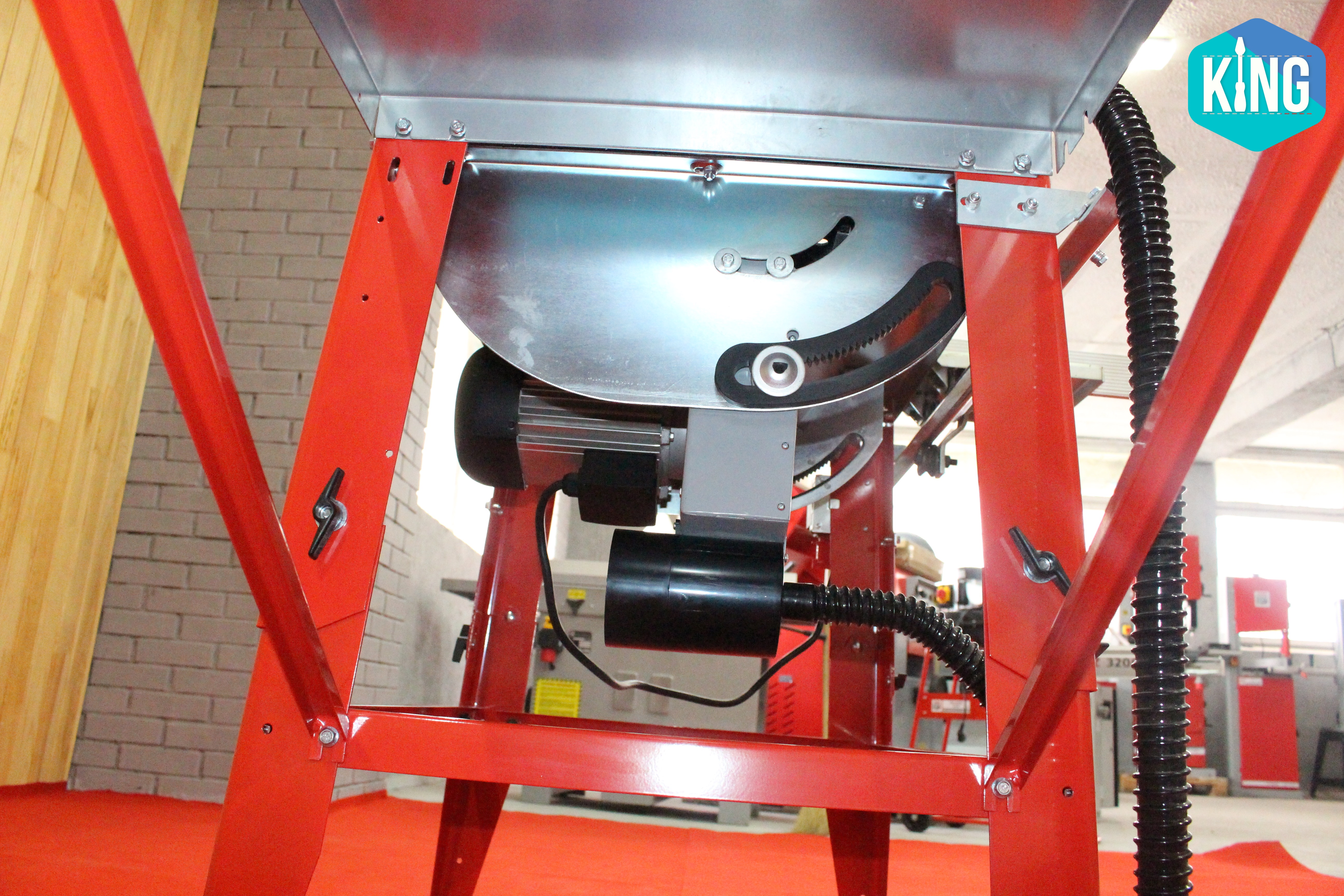 - Вытяжной штуцер диаметром 100 мм и вытяжка сверху кожуха пилы улучшают рабочие условия; Колёса на двух ножках и ручки для поддержки позволяют производить простое изменение рабочего положения и перемещение пилы одному человеку;