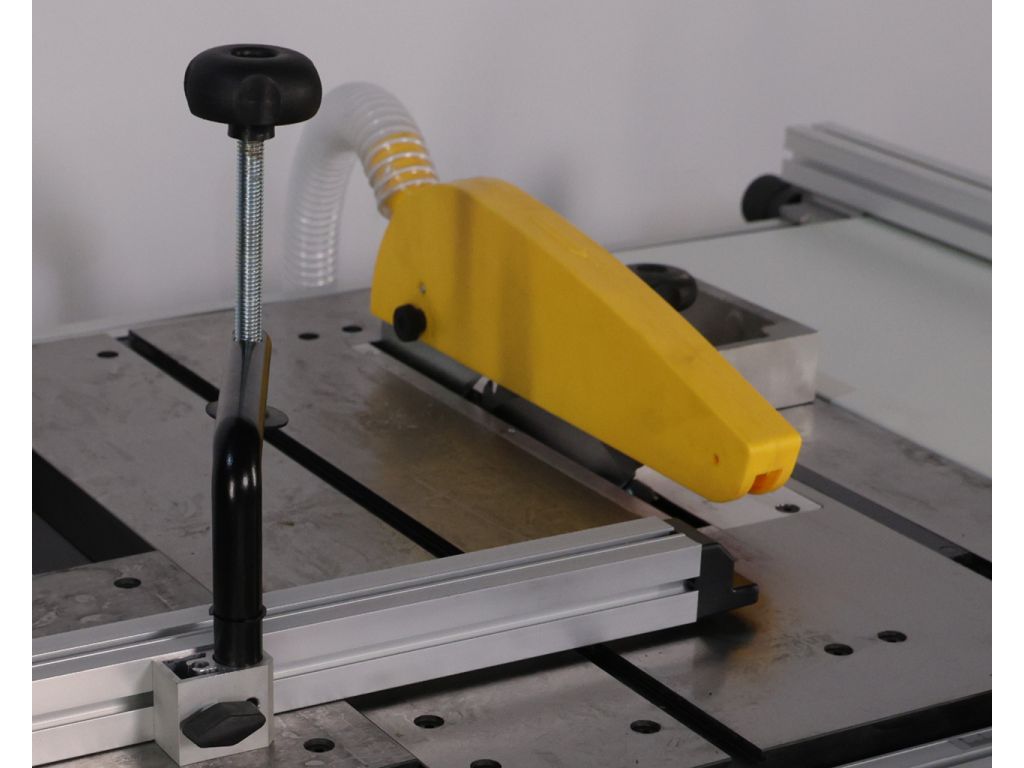 - Просторный рабочий стол: Основной стол размером 420x635 мм вместе с двумя расширениями (по 290x635 мм каждое) предоставляет достаточно пространства для работы с крупными заготовками. Это особенно важно при выполнении сложных задач, где требуется максимальная стабильность и точность при перемещении материала.
