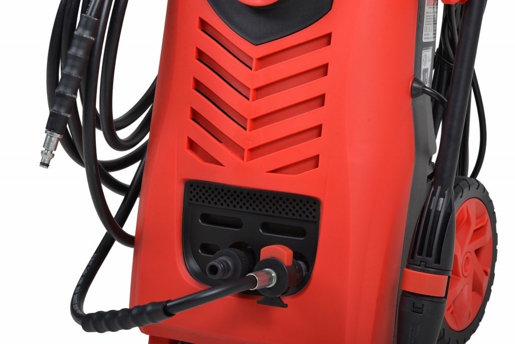 5-метровый шланг высокого давления и 5-метровый кабель питания, а также практичные колеса Hecht 320 обеспечивают достаточную свободу движений. Телескопическая рукоятка легко вынимается для маневрирования и обеспечивает легкое перемещение.