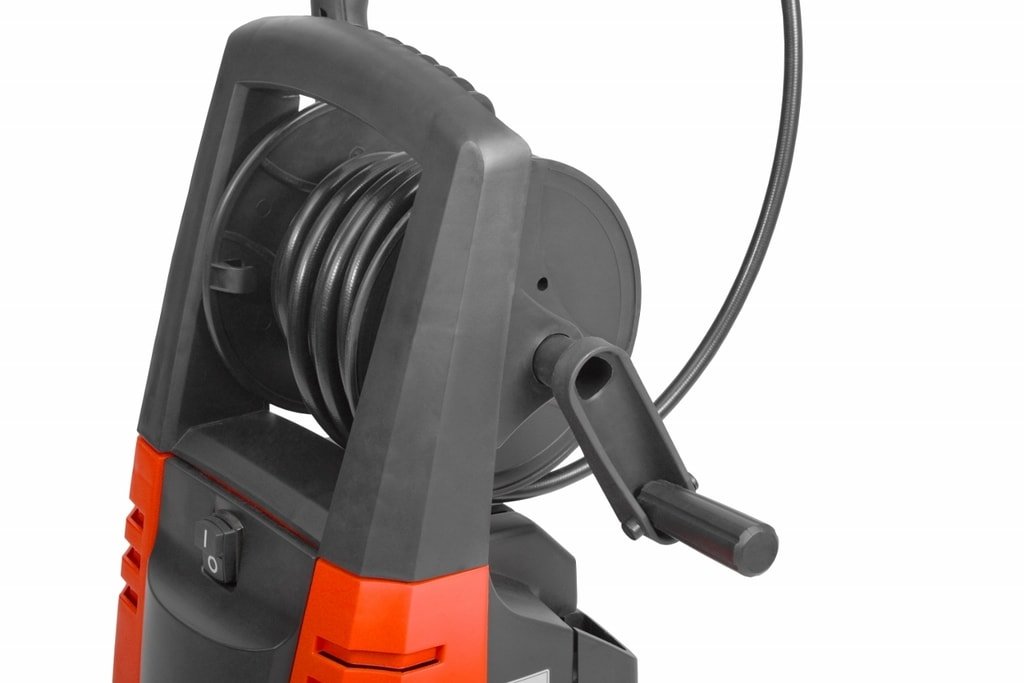 колеса Hecht 326 обеспечивают достаточную свободу движений. После работы можно легко свернуть шланг высокого давления с помощью барабана. Силовой кабель легко наматывать.