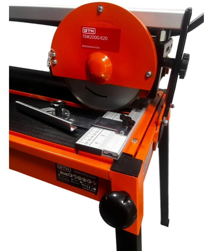 GTM TSW200G-620 - профессиональный электрический станок для резки плитки, черепицы, камня или строительных блоков длиной до 620 мм. Подходит для работы с керамикой, мрамором, гранитом, базальтом, искусственным камнем, бетоном и газобетоном. Благодаря водяному охлаждению режущей кромки диска, обеспечивается качественный и ровный рез, что особенно важно при обработке керамической и керамогранитной плитки.